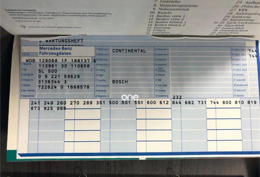 MERCEDES-BENZ Clase SL, Gasolina, año 1999, 57000 kilómetros, color Gris / Plata , precio 34900€. MERCEDES SL 500. FECHA DE FABRICACION 07/1999. SOLO 57.000 KM. LIBRO DE REVISIONES TODO SELLADO EN MERCEDES. Motor 113961 30 110658. Transmisión 722624 01 668578. Interior CUERO NAPPA - AZUL (232A). Pintura 1 PLATA DIAMANTE METALIZADO (744). 241 ASIENTO COND., LADO IZQ., REG. ELECTR. C. MEMORIA. 249 ESPEJO RETROVISOR INTERIOR, DE ANTIDESLUMBRAMIENTO. 260 DESIGNACION D/MODELO EN TAPA D/PORTAMALETAS-SUPRES. 270 ANTENA CON CONMUTADOR ELECTRONICO DE RECEPCION Y TRANSMISION PARA TELEFONO MOVIL, RED D, SOBRE GUARDARROBOS TRASERO IZQUIERDO. 289 VOLANTE DE MADERA/CUERO Y PAL. CAMB. DE MAD./CUERO. 351 SISTEMA AUTOPILOT (APS). 500 ESPEJOS RETROVISORES IZDA. Y DCHA. ABATIBLES. 501 ESPEJO RETROVISOR EXTERIOR DERECHO CALEFACCIONABLE (VOLANTE A LA DERECHA). 551 INSTALACION DE ALARMA ANTIRROBO. 600 INSTALACIÓN LIMPIAFAROS. 612 FAROS DE XENON. 644 DISENO DE 5 RADIOS 17" METAL LIGERO. 682 EXTINTOR. 731 EJECUCIÓN DE MADERA, RAÍZ DE NOGAL. 744 TELA PARA TECHO PLEGABLE 5010 AZUL OSCURO 800 MODELO AÑO 2000.