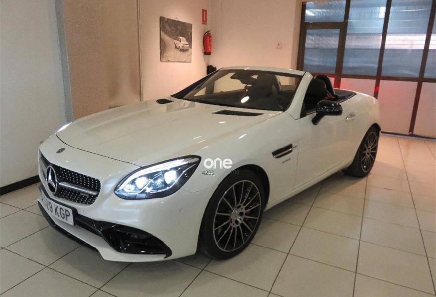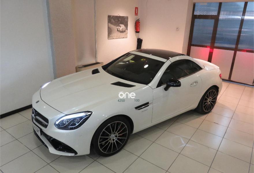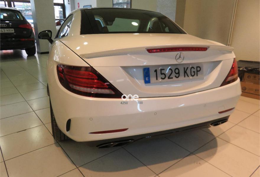 MERCEDES-BENZ Clase SLC, Gasolina, año 2018, 3300 kilómetros, color Blanco metalizado, precio 74000€. Molduras de carbono,Calefacción integrada en el reposacabezas AIRSCARF,Cuero napa Exclusivo AMG/microfibra DINAMICA,COMAND Online,Arcos protectores con inserto de aluminio anodizado,AMG Handling Package,Control del ángulo muerto,Cuero Napa Excusivo/microfibra DINAMICA Negro,KEYLESS-GO,Faros LED Intelligent Light System,designo blanco diamante bright,Climatización automática THERMOTRONIC,Cinturones de seguridad designo color rojo,Limpiaparabrisas con sensor de lluvia,Listones umbral de las puertas iluminados con logotipo "Mercedes-Benz",Sistema PRE-SAFE®,Sistema de sonido surround Harman Kardon® Logic 7®,Paquete de alumbrado interior,Paquete de integración para smartphone con Apple CarPlay y Android Auto,Depósito de combustible de mayor capacidad (70 l),Blanco diamante bright (designo),Llantas de aleación AMG de 18" y 10 radios color negro de alto brillo y superficie pulida a alto brillo, 235/40, 255/35,Paquete AMG Night,Paquete Dinámico Avanzado,PARKTRONIC con guía para el aparcamiento,Calefacción eléctrica en asientos delanteros. vehiculo nuevo 2018 con tan solo 2900km no llega. Es nacional un solo propietario muy equipado pvp nuevo 96.711,97€. oportunidad unica. ENTREGA INMEDIATA. garantia oficial. vehiculo a estrenar.