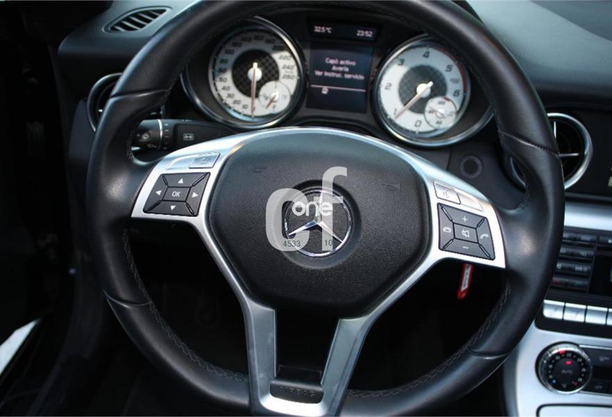 MERCEDES-BENZ Clase SLK, Diesel, año 2012, 30000 kilómetros, color Negro (AMG,MERCEDES OFICIAL) metalizado, precio 29000€. Calefacción eléct.asientos delanteros,Molduras de fibra de carbono,Preequipo para teléfono móvil (UHI),Arcos de protección con molduras de aluminio,Calef.integr.en reposacabezas AIRSCARF,Capota Negro Obsidiana,COMAND Online con disco duro de navegación, Linguatronic y cargador 6 DVDs integrado en salpicadero,Cuero Napa Excusivo Negro,Faros bixenón inteligentes (ILS) (lavafaros, luz activa, luz de giro, luz para carretera automática, luz para autopista, luces antiniebla ampliadas),Paquete deportivo AMG,Llantas de aleación AMG de cinco radios y 18", 225/40, 245/40,Levas de cambio en el volante,PARKTRONIC con guía de aparcamiento. -CODIGO PINTURA:197,G1-PAQUETE DE ILUMINACION INTERIOR: 876 ,G2-RECONOCIMIENTO DE SELALES DE TRAFICO : 513,G4-AGILITY CONTROL :483,G5-ASISTENTE LUZ DE CARRETERA: 608,G7-PARKTRONIC DELANTERO: 220/230,H5-COMAN ONLINE CON CARGADOR DE DVD´S: 512,H9-MEDIA INTERFACE:518,I3-FAROS BIXENON CON LUCESACTIVAS (ILS): 621/622,I6-LAVAFROS: 600,I7-BOQUILLAS DE LIMPIAPARABRISAS TERMICAS : 875,I8-LUCES DIURNAS LED : 204,J5-TAPIZADO EN CUERO NAPA: 801A/8,J7-ASIENTOS TERMICOS: 873,J8-CALEFACCION INTEGRADA EN REPOSACABEZAS (AIRSCARF) : 403,K8-PAQUETE DEPORTIVO AMG: 950,K9-PROTECCION ANTIROBO: P54/551,L3-CAPO ACTIVO( PROTECCION PARA PEATONES) : U60,L4-PARAVIENTOS EN TELA: 285,L6-RETROVISOR INTERIOR FOTOSENSIBLE : 249,L7-RETROVISORES EXTERIORES PLEGABLES : 500,L8-INSERCIONES DE ALUMINIO CLARO DE ASPECTO LIMADO: H76,L9-ESPEJOS RETROVISORES EXTERIORES FOTOSENSIBLES : 49,M2-PALANCA DE CAMBIOS DE CUERO: 280,N6-SISTEMA DE SONIDO: 810,N9-PORTA VASOS : 309,O2-MANDO CONFORT TECHO CORREDIZO: 880,O7-BARRAS ANTIBUELCO.