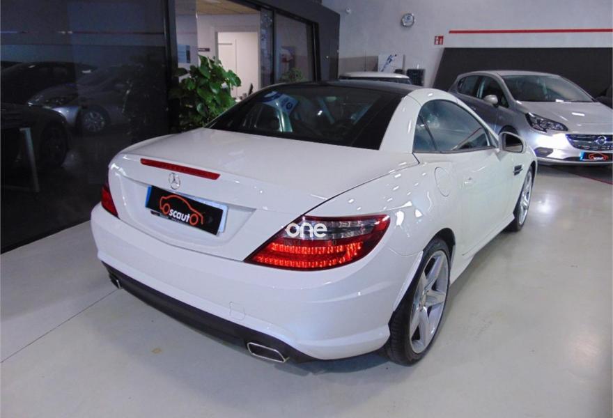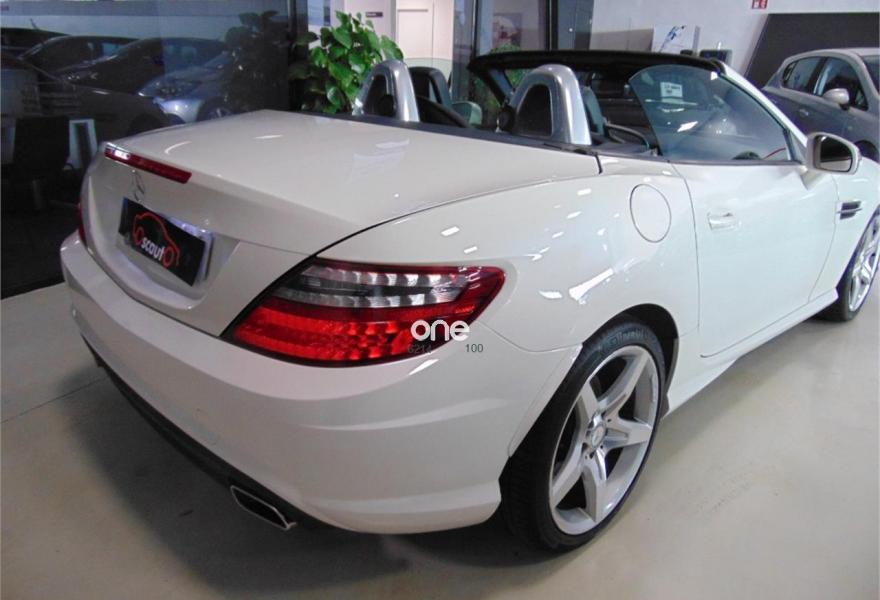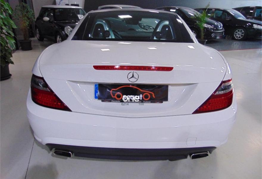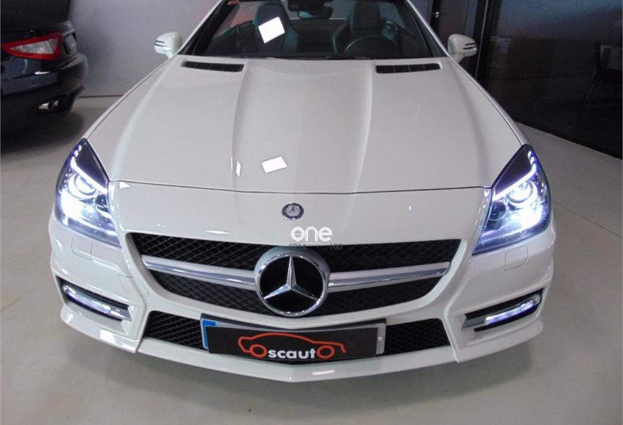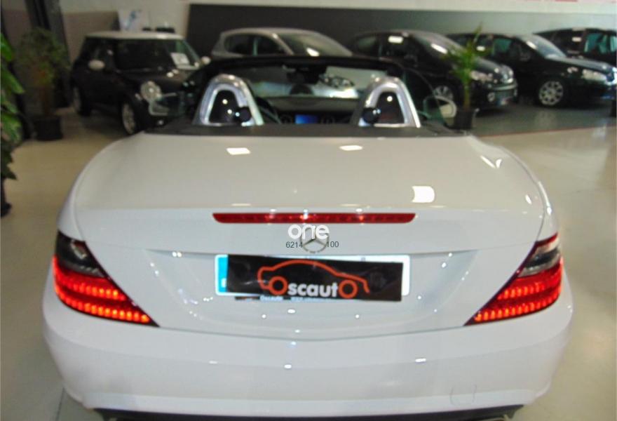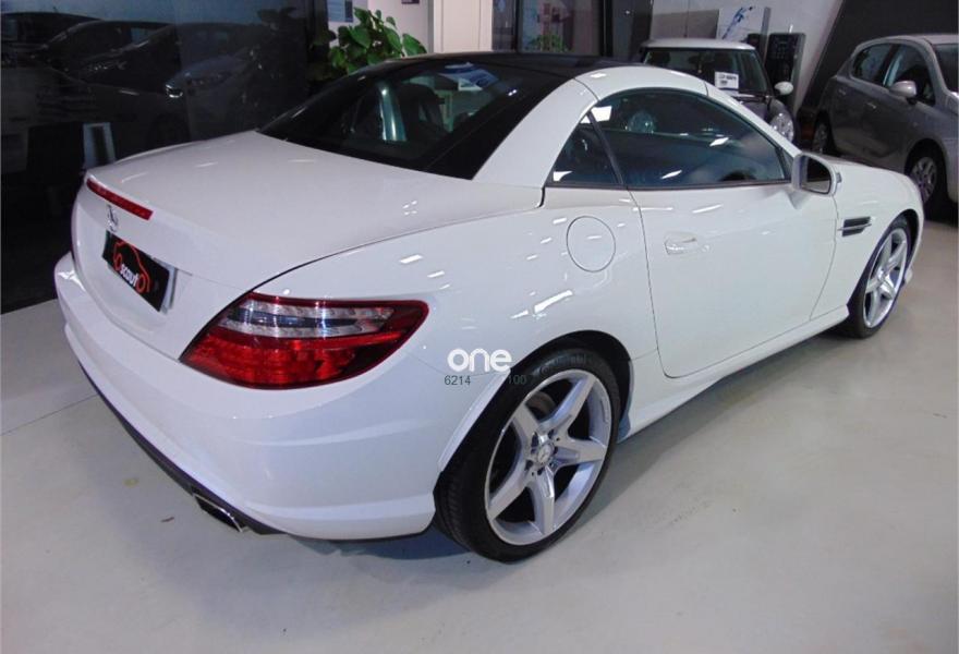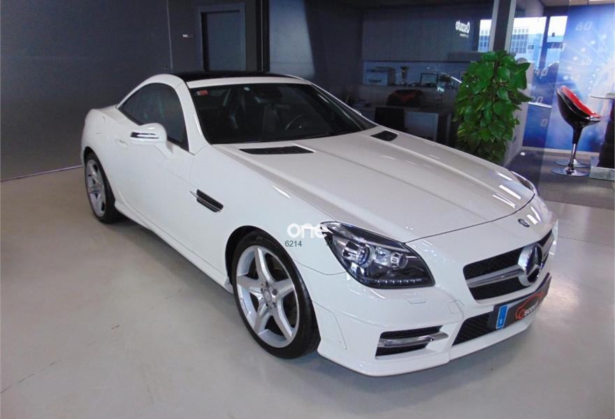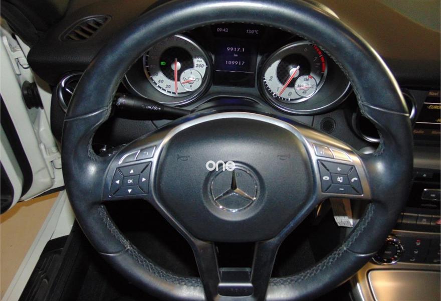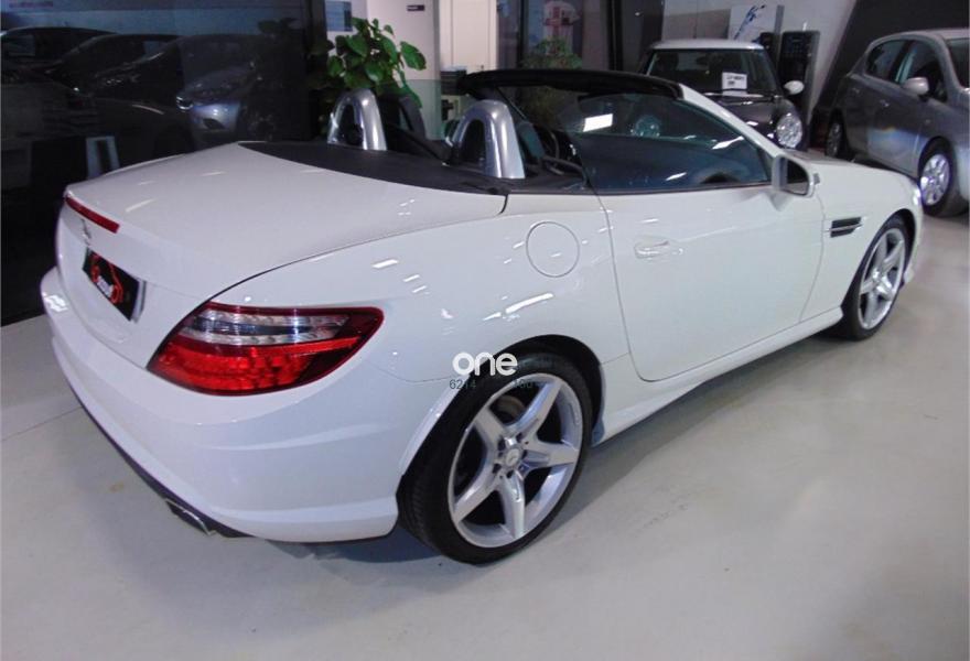 MERCEDES-BENZ Clase SLK, Gasolina, año 2012, 109000 kilómetros, color Blanco metalizado, precio 25000€. Vehículo equipado con: estética exterior AMG y llantas AMG,Asientos deportivos tapizados en cuero, sistema de navegación, bluetooth, faros bixenon con luces led, calefacción en los asientos, Star-Stop, conducción ECO, control de estabilidad, control de velocidad, mandos en el volante, conexiones auxiliares USB y SD, climatizador bizona, Magic SKy control (Techo de cristal que se oscurece), sensor de lluvia, retrovisores eléctricos plegables. vehículo en perfectas condiciones. Un solo propietario no fumador. Se entrega con dos juegos de llaves y revisiones al día en servicio oficial. El vehículo no incluye transferencia de titularidad, garantía opcional desde 500€.