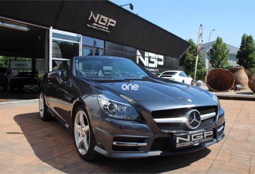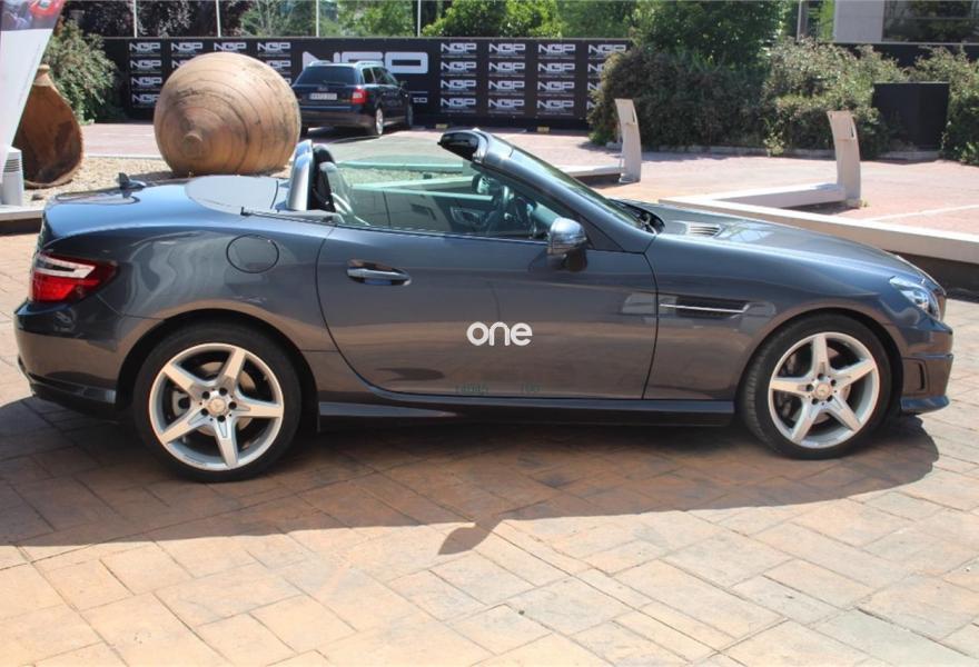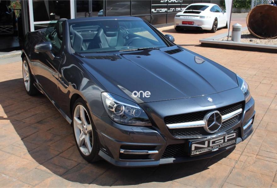 MERCEDES-BENZ Clase SLK, Diesel, año 2014, 55000 kilómetros, color Gris / Plata (Oscuro ) metalizado, precio 32500€. Calefacción eléct.asientos delanteros,Tapizado cuero designo unicolor,Módulo Bluetooth para móviles con perfil SAP,Calef.integr.en reposacabezas AIRSCARF,Climatizador autom.confort THERMOTRONIC,Cuero Napa Excusivo Negro,Dirección paramétrica más directa,Faros bixenón inteligentes (ILS) (lavafaros, luz activa, luz de giro, luz para carretera automática, luz para autopista, luces antiniebla ampliadas),Instalación lavafaros,Línea "AMG Line",Paquete deportivo,Sist.sonido surround (harman),11 altav.,Techo solar panorámico con MAGIC SKY CONTROL (cristal de transparencia variable),Gris Indio (metalizado),Cambio automático de 7 marchas 7G-TRONIC,Levas de cambio en el volante,Tren de rodaje deportivo,Extintor de incendios montado,PARKTRONIC con guía de aparcamiento,PRE-SAFE. Nacional , libro de revisiones oficial , dos llaves , entrega inmediata