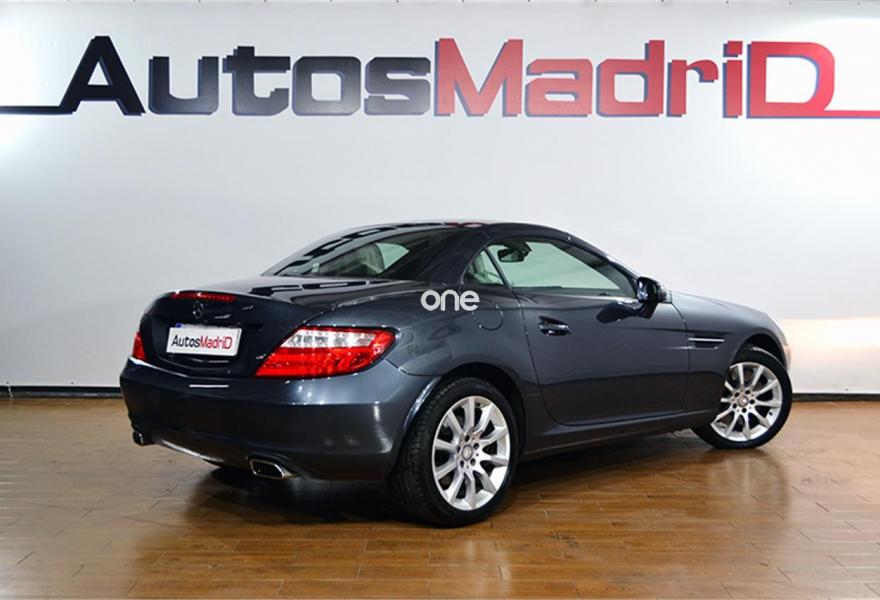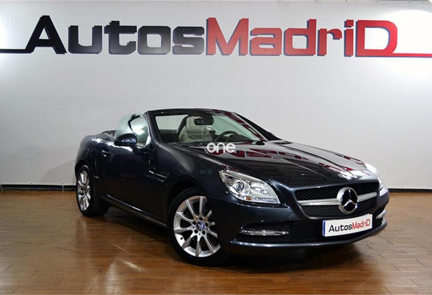 MERCEDES-BENZ Clase SLK, Gasolina, año 2011, 92700 kilómetros, color Gris / Plata metalizado, precio 30990€. Calefacción eléct.asientos delanteros,Molduras tapizados con cuero designo,Llantas de aleación de 10 radios,Pintura metalizada,Plata Paladio (metalizado),Capota Plata Iridio,Climatizador autom.confort THERMOTRONIC,Cuero Gris Alpaca,Faros bixenón con regulación dinámica del alcance de las luces y luz de giro,Pintura metalizada designo metalizado,Cambio automático de 7 marchas 7G-TRONIC,Tren de rodaje deportivo. P.V.P Garantía AutosMadrid a consultar. Equipado con: xenon, faros antiniebla, ludes diurnas, tubos de escape deportivos, techo rígido, llantas de aleación de 17 pulgadas, retrovisores regulación eléctrica y abatibles, volante multifunción de cuero con levas, sensor de lluvia, encendido automático de luces, freno de estacionamiento eléctrico, pedales deportivos, asientos calefactables deportivos, climatizador bizona, radio CD/AUX/USB/Bluetooth, limitador/regulador de velocidad, modo eco/sport, pantalla multimedia y reposabrazos de piel con guantera.