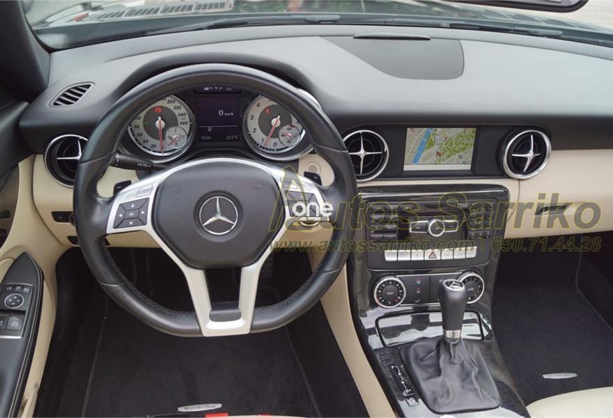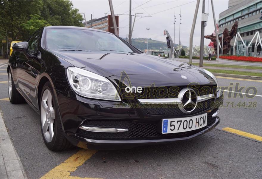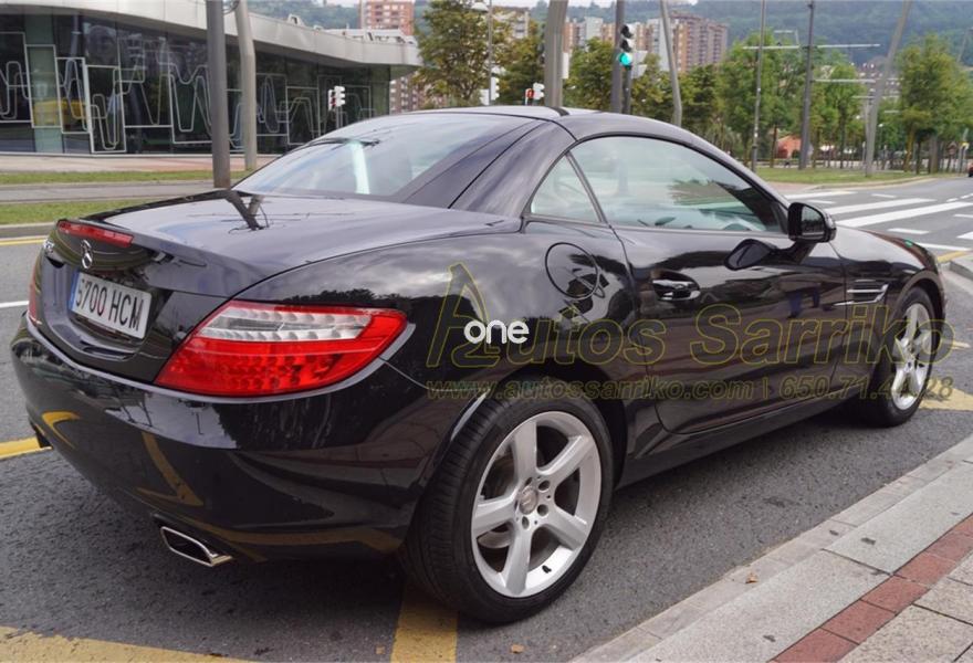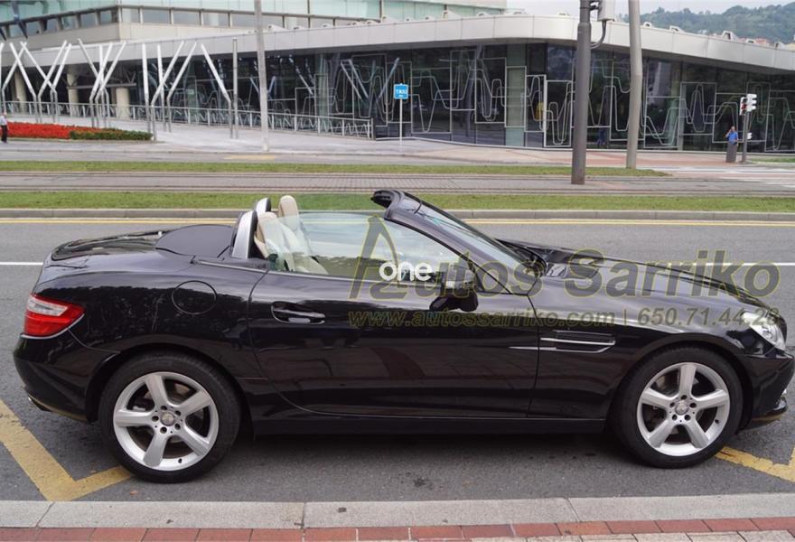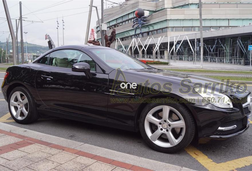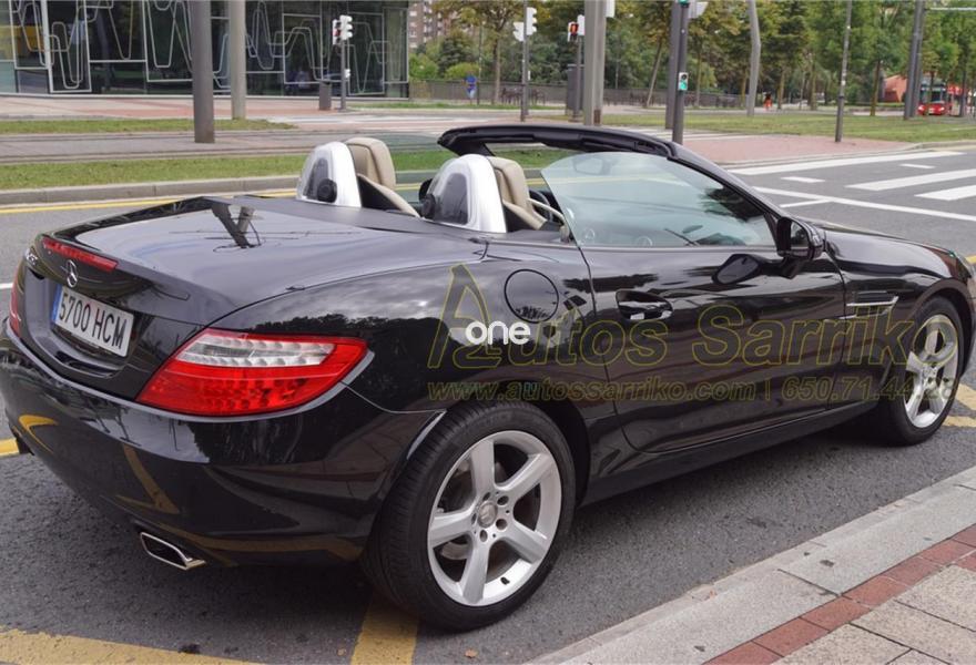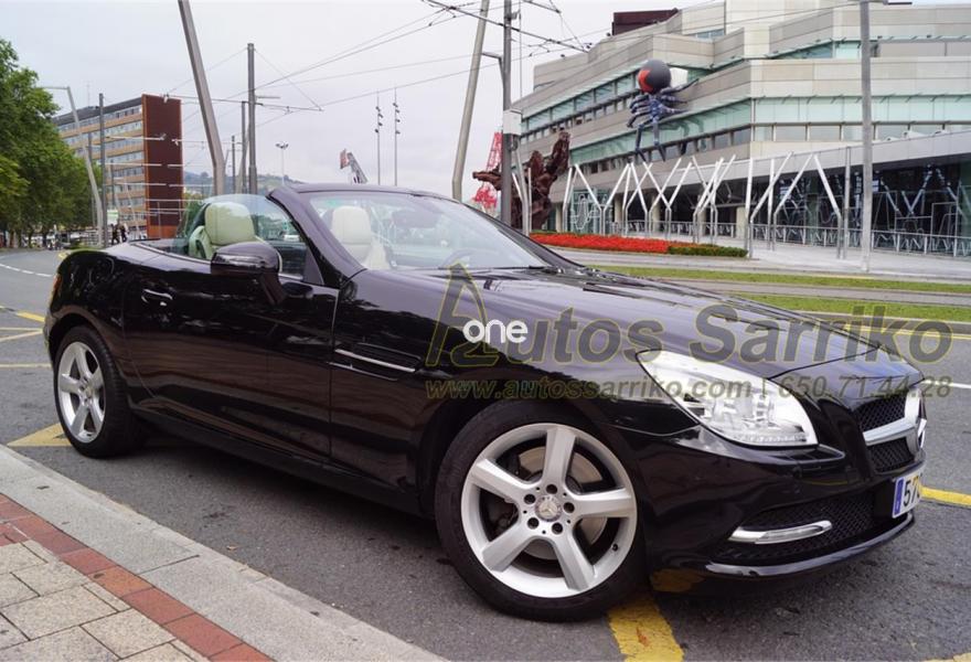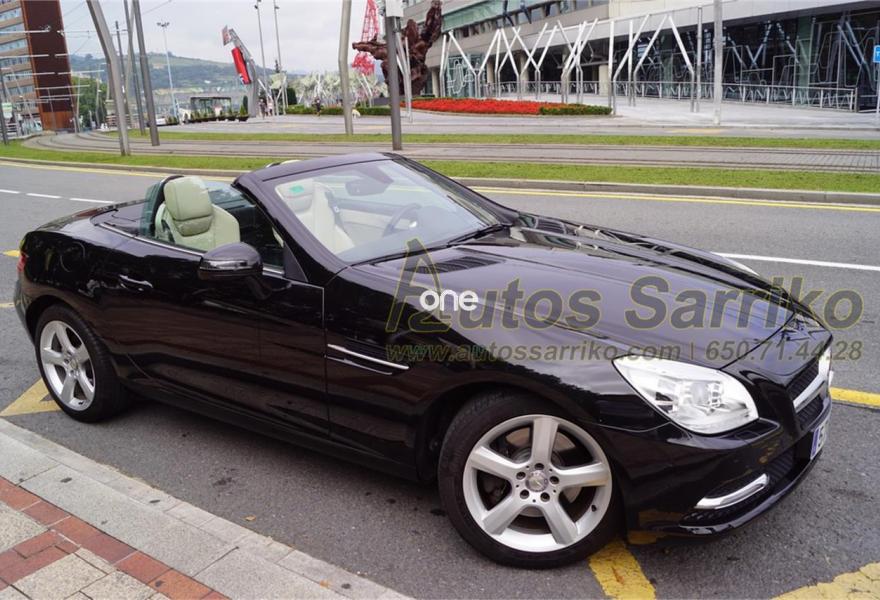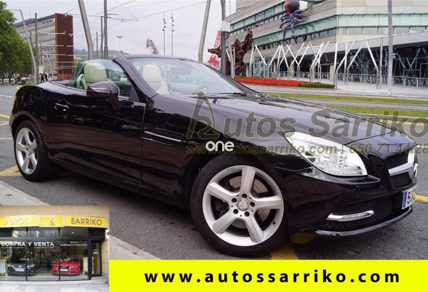 MERCEDES-BENZ Clase SLK, Gasolina, año 2011, 90000 kilómetros, color Negro metalizado, precio 23900€. Molduras de madera fresno negro,Tapizado cuero designo unicolor,Navegador Becker MAP PILOT,Preequipo para teléfono móvil (UHI),Cambio automático de 7 marchas 7G-TRONIC,Cuero,Faros bixenón inteligentes (ILS) con regulación dinámica del alcance de las luces y luz de giro,Instalación lavafaros,Limpiaparabrisas con sensor de lluvia,Interfaz universal en reposabrazos central para USB, AUX-in y iPod,Levas de cambio en el volante,Tren de rodaje deportivo,Extintor de incendios montado,DISTRONIC PLUS con BAS PLUS y freno PRE-SAFE,PARKTRONIC con guía de aparcamiento. Espectacular Cabrio Premium, NACIONAL, IMPECABLE estado con todas las revisiones efectuadas en servicio oficial MERCEDES.Se certifica y documenta kilometraje y que no ha sufrido golpe estructural.NAVEGACIÓN+ASIENTOS DEPORTIVOS EN CUERO BEIGE+LEVAS DE CAMBIO+FAROS XENON+PARKTRONIC DELANTERO Y TRASERO+CONTROL DE VELOCIDAD+BLUETOOTH+CAPOTA RÍGIDA ELÉCTRICA+++El precio incluye 12 meses de garantía AUTOS SARRIKO EXCELLENCE.Se financia el 100% de la operación a unas condiciones excelentes. Consúltenos sin compromiso.La documentación se efectúa en el día con un coste de 97 euros.Todos nuestros vehículos pasan por una exhaustiva revisión de 100 puntos.AUTOS SARRIKO, 30 años liderando el sector en Vizcaya..