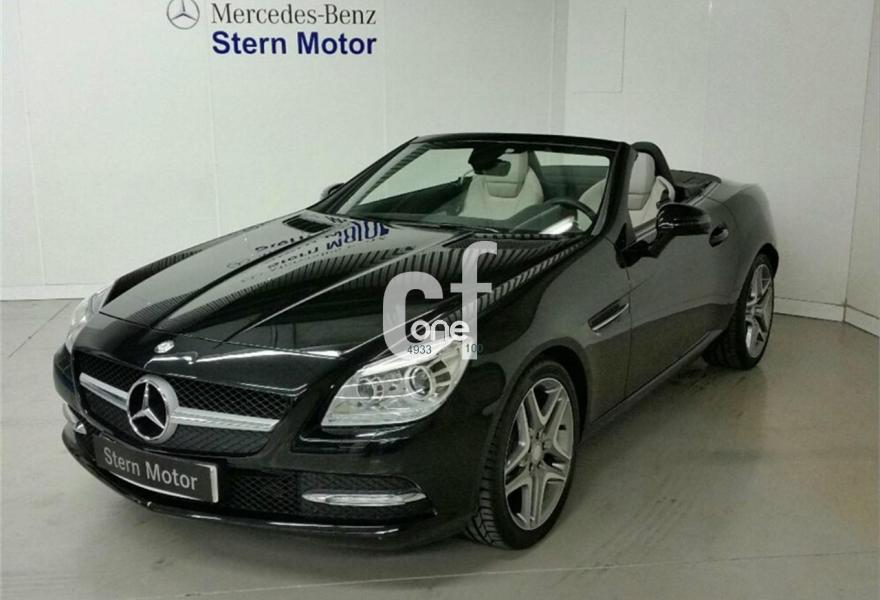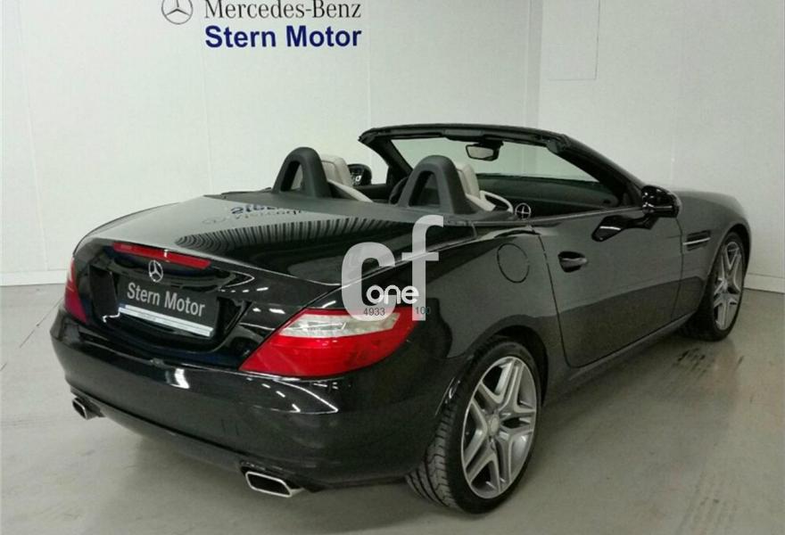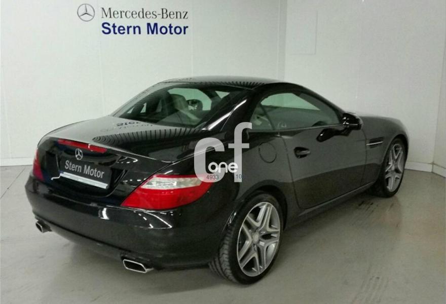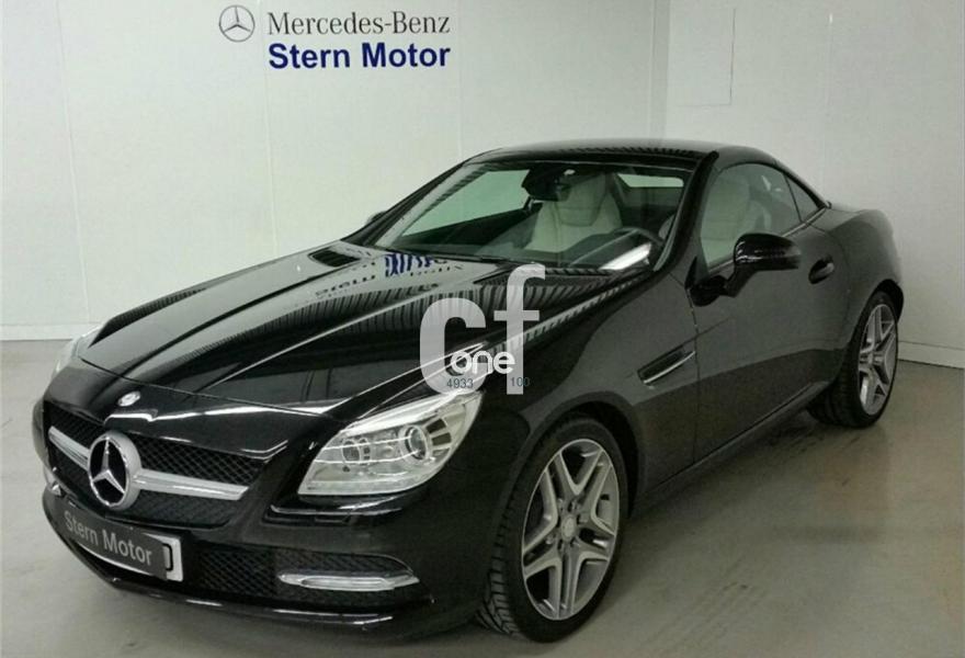 MERCEDES-BENZ Clase SLK, Gasolina, año 2013, 7000 kilómetros, color Negro metalizado, precio 38200€. Negro Obsidiana (metalizado),Cambio automático de 7 marchas 7G-TRONIC,Cuero Gris Cristal,Alfombrillas de velours color equipamiento,Faros bixenón inteligentes (ILS) (lavafaros, luz activa, luz de giro, luz para carretera automática, luz para autopista, luces antiniebla ampliadas),Paquete Antirrobo,Llantas de aleación de cinco radios dobles y 18", 225/40, 245/35,Techo solar panorámico tintado,Navegador Becker MAP PILOT,Radio Audio 20 con cargador de 6CDs integrado en salpicadero,Interfaz universal en reposabrazos central para USB, AUX-in y iPod,Depósito de mayor capacidad (70 l). Vehículo de gerencia completamente equipado, en perfecto estado y revisado por nuestro concesionario MERCEDES-BENZ.