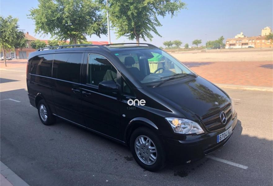 MERCEDES-BENZ Viano, Diesel, año 2014, 150000 kilómetros, color Negro metalizado, precio 19900€. Luz diurna LED,Volante y palanca de cambios cuero Trend,Estor cubre-equipajes,Paquete deportivo,Comand APS con cargador de DVD,Porta CD's DIN,Sistema de sonido,Banco fijo confort 3 plazas 1ª fila aba.,Paquete Life,Aire acondicionado adicional zona pasaje,Alarma antirrobo,Alarma autón. c/sensor movim./remolcado,Asidero de acceso a zona de pasaje,Climatizador interior Thermotronic,Enganche remolque bola desmonta./enchufe,Espejo retrovisor interior deslumbrante,Faros bixenon con luz de giro,Tempomat,Bateria adicional reforzada. Totalmente nueva en todos los sentidos,libro de mantenimiento todo en mercedes,vehiculo nacional en inmejorable estado,mercedes Vito motor 3000 automática,9 plazas,mejor ver,aceptamos prueba en concesionario oficial y entregamos en cualquier punto de espana,baleares o islas canarias.