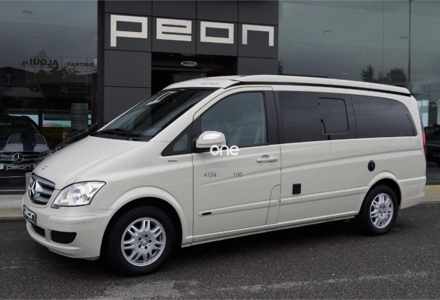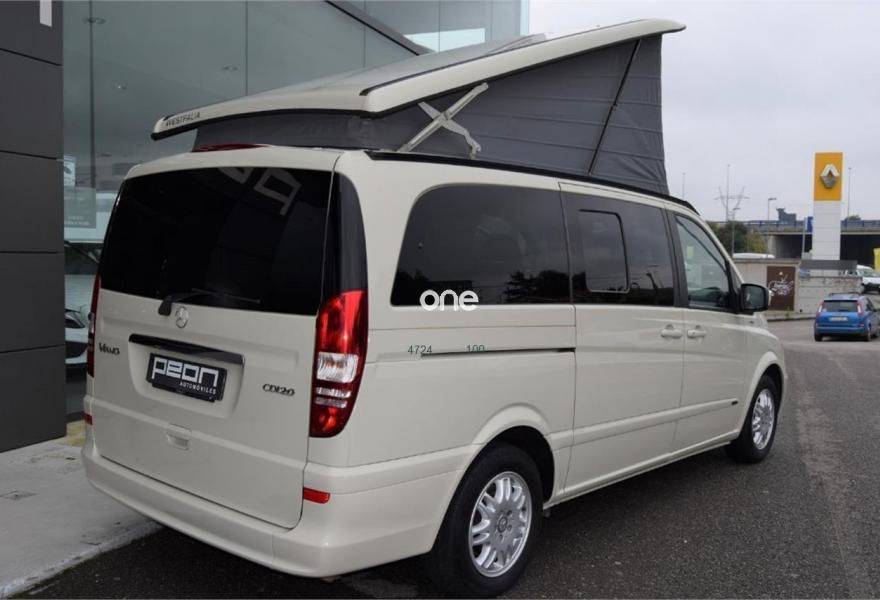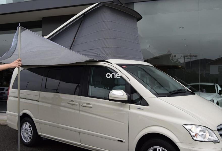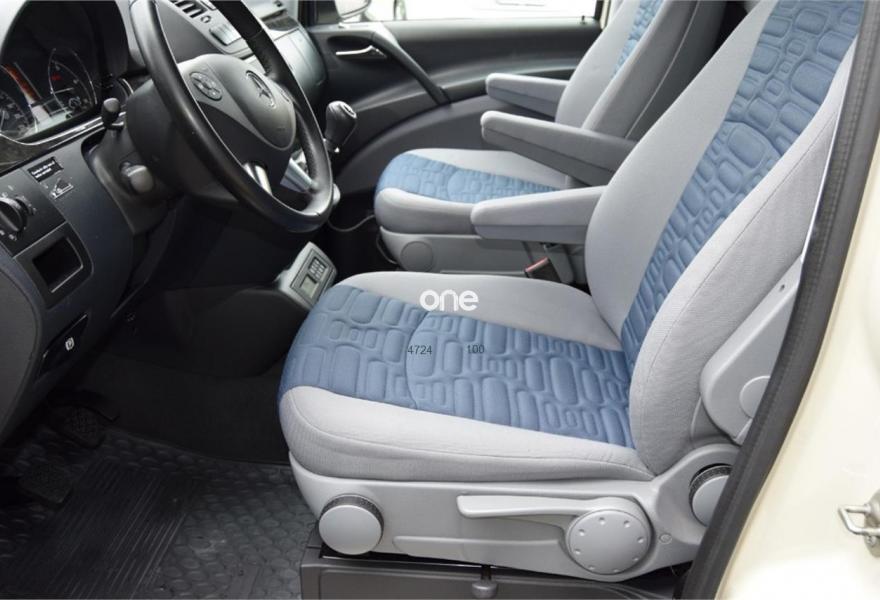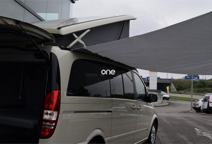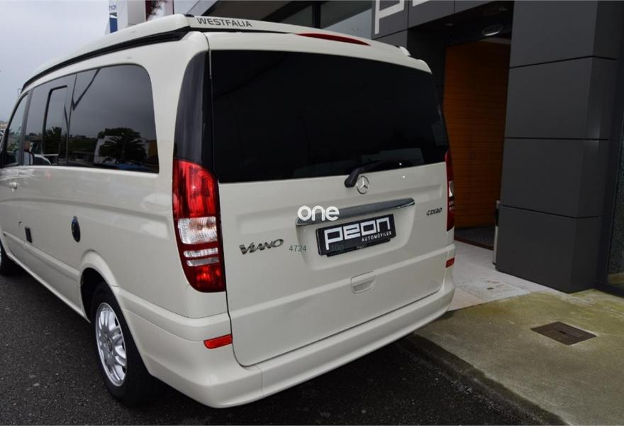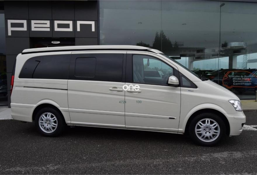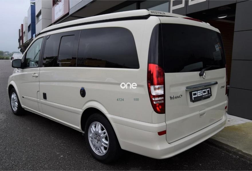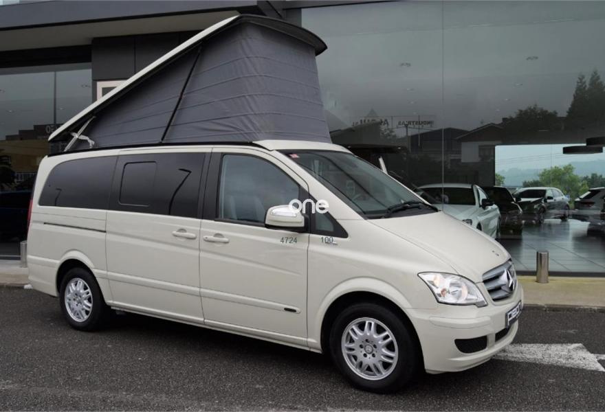 MERCEDES-BENZ Viano, Diesel, año 2012, 124000 kilómetros, color Beige , precio 39800€. Equipamiento original Westfalia, cambio manual 6v, 5 plazas, paquete equipamiento Samarkanda, techo elevable con cama superior, calefacción estacionaria programable por aire caliente, cocina completa con fregadero y depósito de aguas, avance en ambos laterales, ducha externa, nevera, llantas aluminio, asientos delanteros giratorios, cristales tintados con cortinillas, asientos traseros abatibles eléctricamente convertibles en cama, volante multifunción, sensor de luces y lluvia, aire acondicionado, ordenador abordo, control de velocidad, espejos eléctricos, teléfono Bluetooth, etc, etc. IVA deducible 50%.