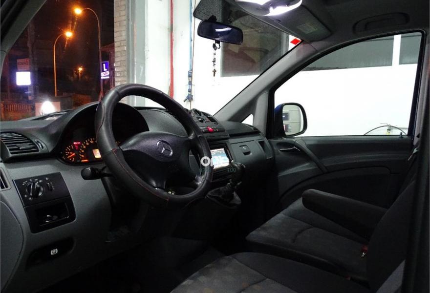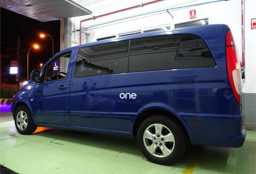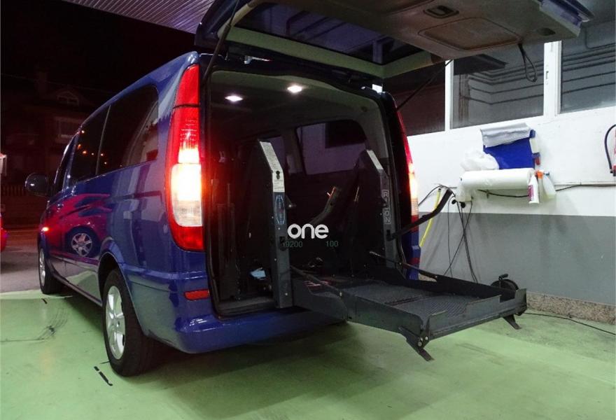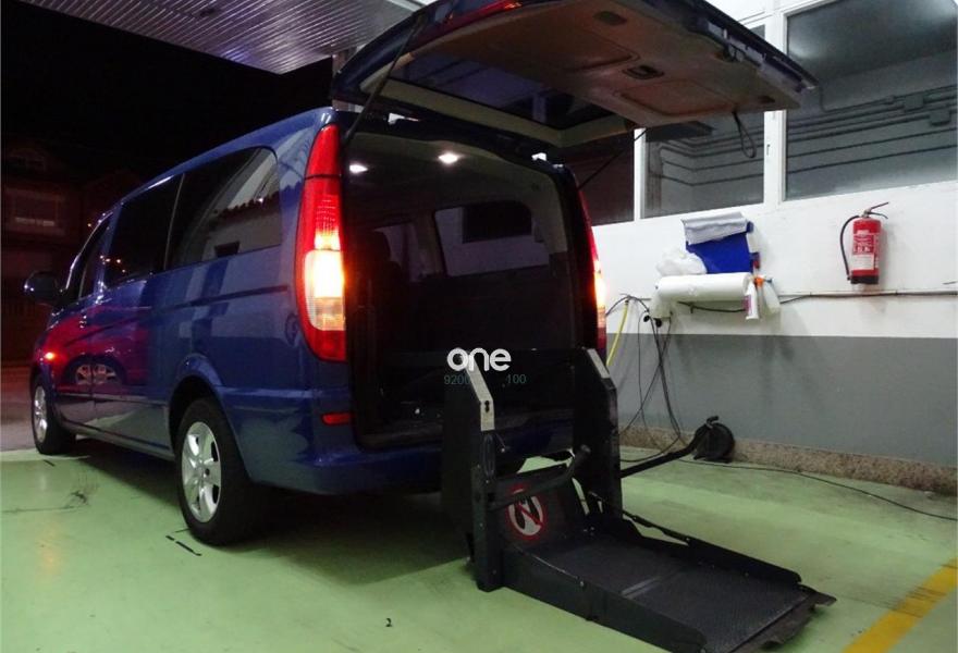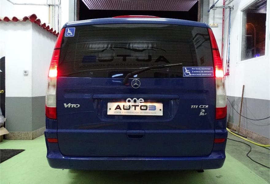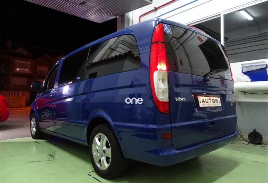 MERCEDES-BENZ Vito, Diesel, año 2007, 198000 kilómetros, color Azul metalizado, precio 18000€. (Vehículo de particular). (Transferencia incluída en el precio). Preciosa Mercedes-Benz Vito 111 cdi 9 plazas (fila trasera de asientos sin estrenar) 116cv larga, adaptada para personas con minusvalía. (Minusvalidos, discapacitados, personas con movilidad reducida). Totalmente revisada, mantenimiento cada 10.000 kilómetros, Bomba de agua nueva y cadena de distribución recién revisada, ruedas nuevas, etc. Impecable, se entrega con todas las revisiones y mantenimientos estrictamente al día. Dispone de plataforma elevadora eléctrica con capacidad de carga de 360 kilos, con todos sus anclajes y cinturones de seguridad, totalmente nueva, muy poco uso. (Precio de rampa nueva: 12.500€, con homologación incluída). El vehículo dispone de elevalunas eléctricos, aire acondicionado, esp, pantalla/dvd con navegador y cámara de marcha atrás, llantas, ordenador de abordo, cierre centralizado, lunas tintadas homologadas, retrovisores eléctricos, alarma, etc.
