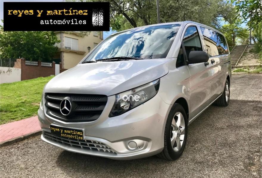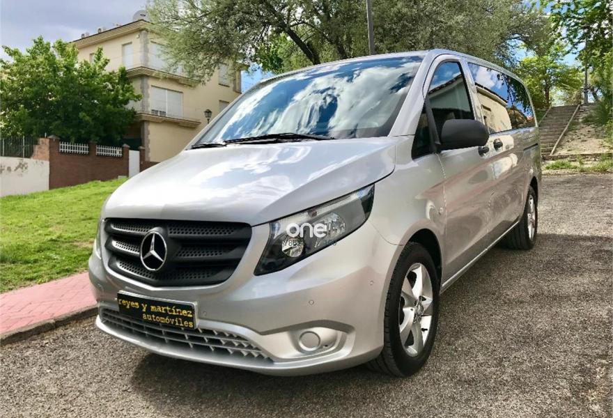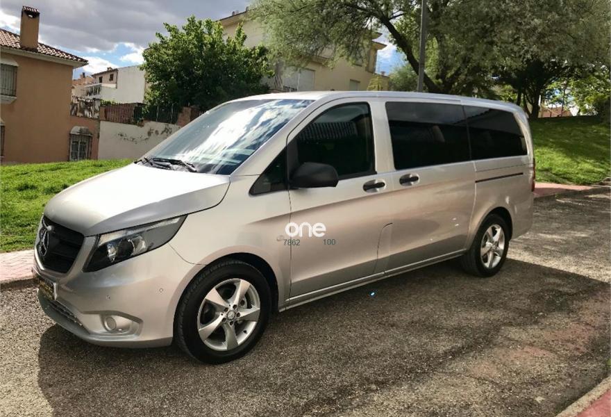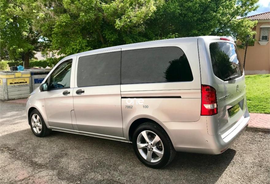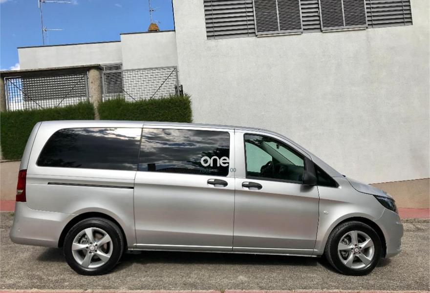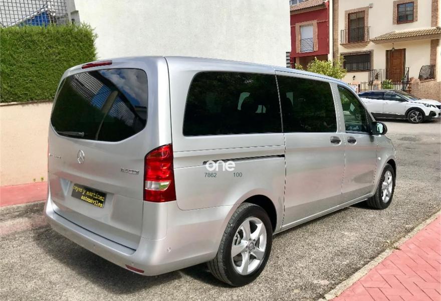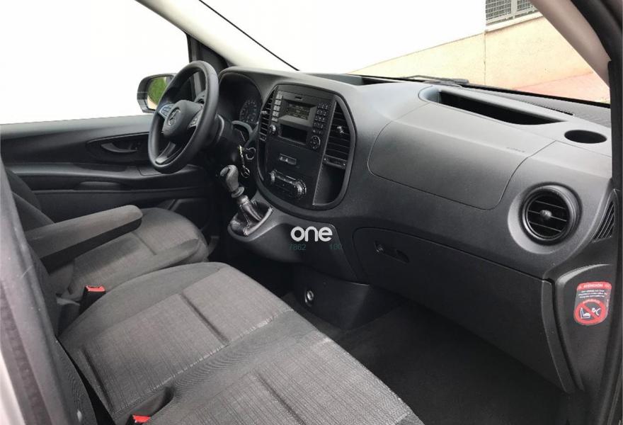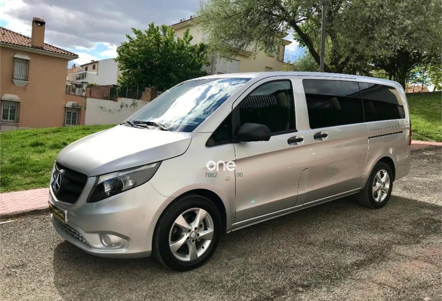 MERCEDES-BENZ Vito, Diesel, año 2017, 49563 kilómetros, color Gris / Plata metalizado, precio 25537€. Banco fijo 3 plazas 1ª fila ext.abatible,Enmoquetado en habitaculo delante,Portavasos doble centrado en puesto de conduccion,Revestimiento piso zona pasajeros TPO,Revest. interior compart. carga, zonas superiores,12 V toma de corriente para la fila de asientos trasera, derecha e izquierda,Caja de enchufe de 12 V en portaequipajes/espacio de carga,Puerta corredera izquierda,Alarma antirobo,Asidero alumbrado parte trasera,Dos llaves principales adicionales,Dos Luces interiores zona carga/pasaje,LED Intelligent Light System,Paquete aparcamiento,Cristales tintados en compartimento pasajeros,Enganche remolque bola desmont. y enchu.,Llantas de aleacion ligera 7J x 17, 20 radios,Pintura metalizada. MERCEDES VITO 114CDI TOURER LARGA, AÑO 08/02/2017, KM 46577KM CERTIFICADOS MERCEDES