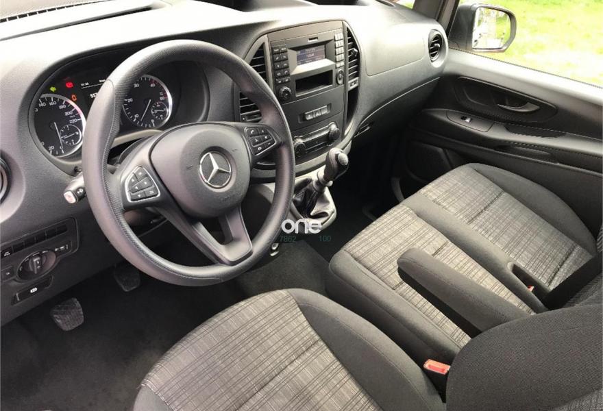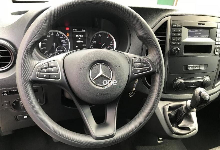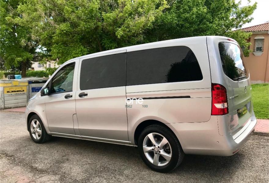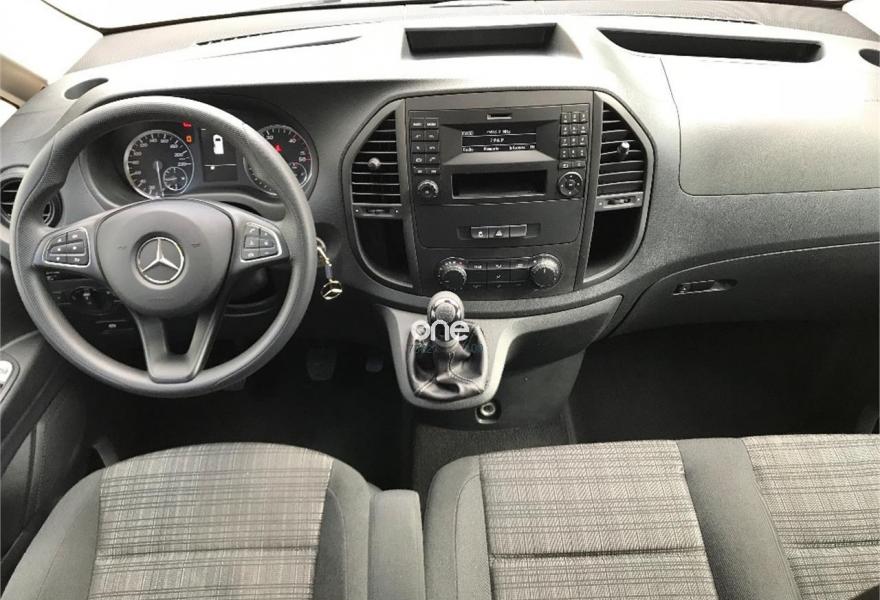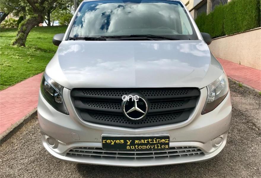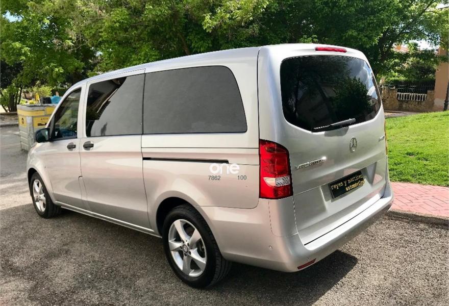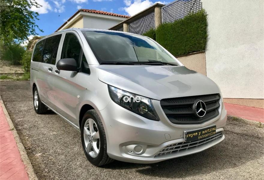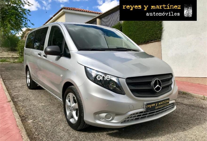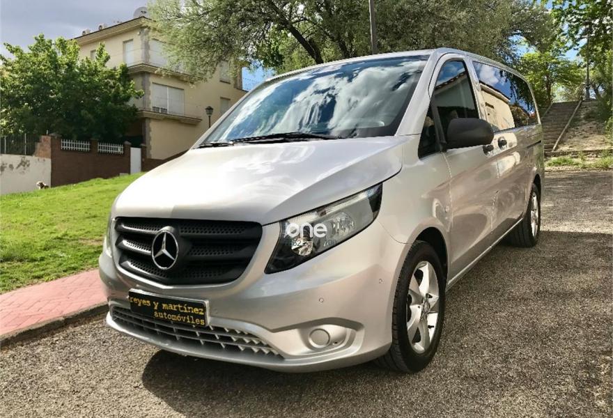 MERCEDES-BENZ Vito, Diesel, año 2017, 49563 kilómetros, color Gris / Plata metalizado, precio 25537€. Banco fijo 3 plazas 1ª fila ext.abatible,Enmoquetado en habitaculo delante,Portavasos doble centrado en puesto de conduccion,Revestimiento piso zona pasajeros TPO,Revest. interior compart. carga, zonas superiores,12 V toma de corriente para la fila de asientos trasera, derecha e izquierda,Caja de enchufe de 12 V en portaequipajes/espacio de carga,Puerta corredera izquierda,Alarma antirobo,Asidero alumbrado parte trasera,Dos llaves principales adicionales,Dos Luces interiores zona carga/pasaje,LED Intelligent Light System,Paquete aparcamiento,Cristales tintados en compartimento pasajeros,Enganche remolque bola desmont. y enchu.,Llantas de aleacion ligera 7J x 17, 20 radios,Pintura metalizada. MERCEDES VITO 114CDI TOURER LARGA, AÑO 08/02/2017, KM 46577KM CERTIFICADOS MERCEDES