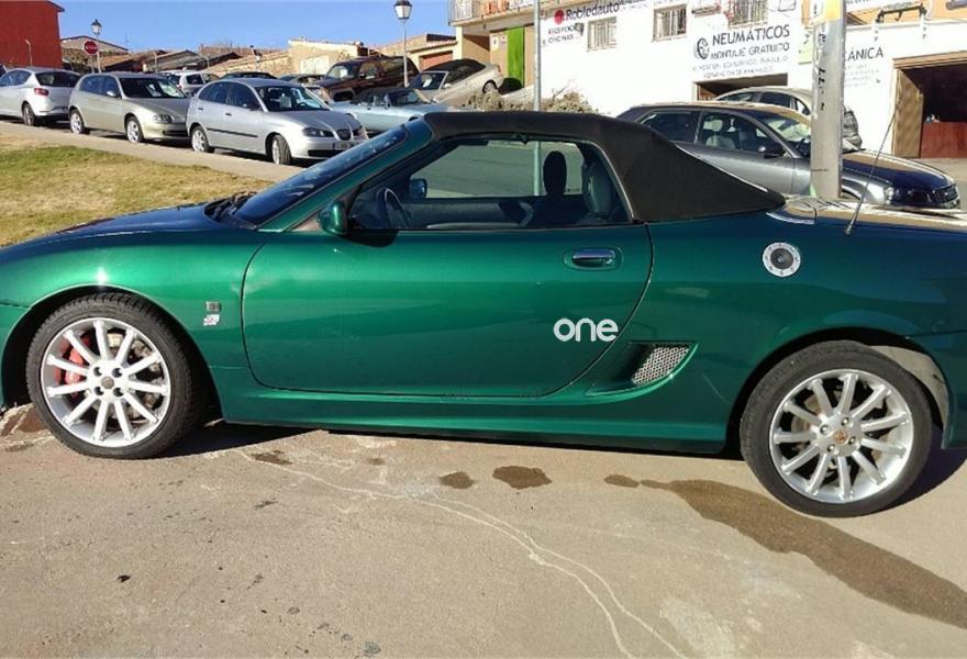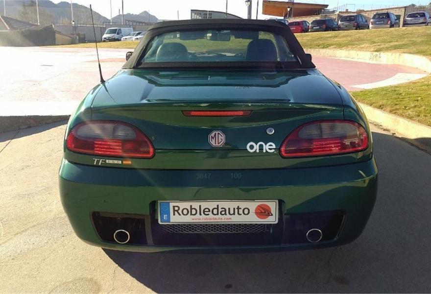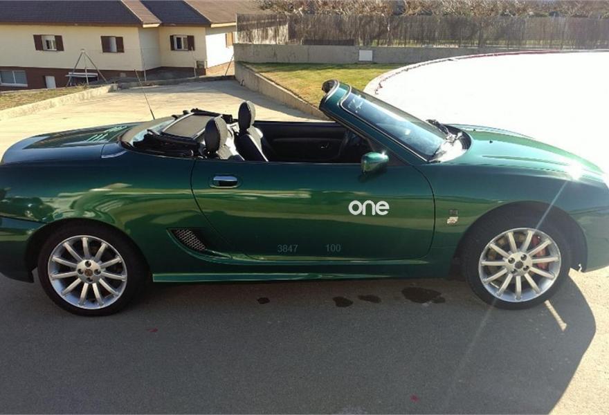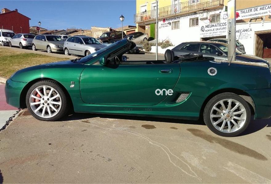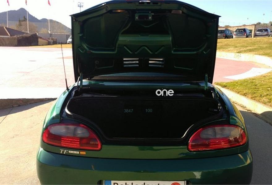 MG TF, Gasolina, año 2002, 93291 kilómetros, color Verde , precio 6990€. MG TF 160 Cabrio de 2002, con 93. 291 km, 160cv, 1796cc, 4 cilindros, gasolina. Incluida capota dura. Un deportivo eficaz, muy divertido de conducir, con un motor central de propulsión trasera. Muy atractivo descapotado, para disfrutar de viajes y paseos a cielo abierto. Equipado con ABS, airbag acompañante, airbag conductor, aire acondicionado, asientos deportivos, cierre centralizado con mando a distancia, dirección asistida, elevalunas eléctricos, inmovilizador electrónico, llantas aleación, pintura metalizada, radio cd, retrovisores eléctricos, techo duro, volante de cuero. Color Verde..