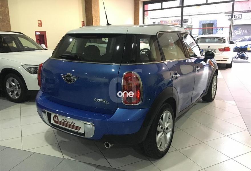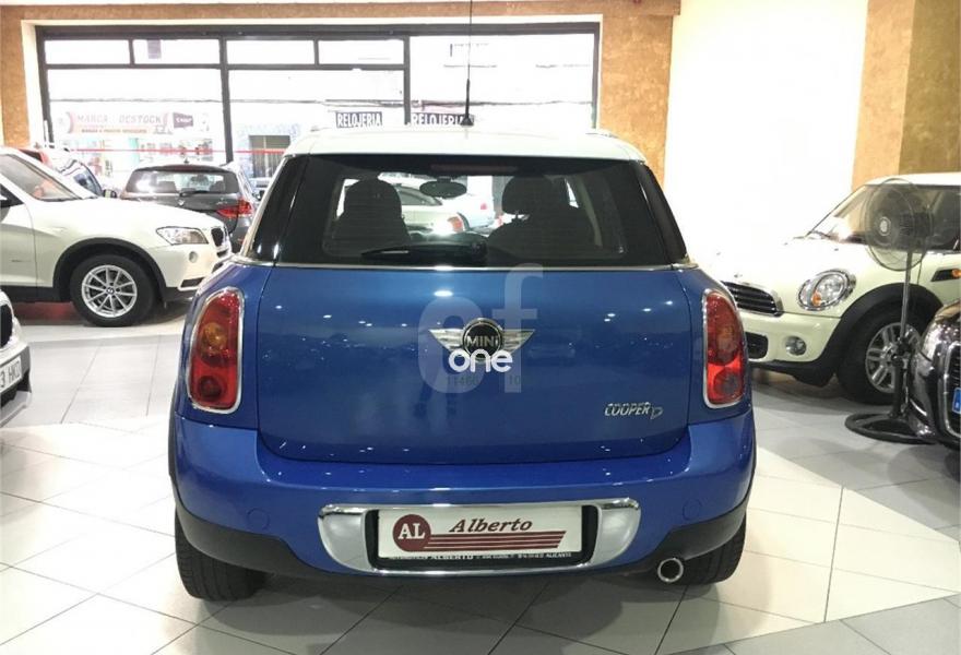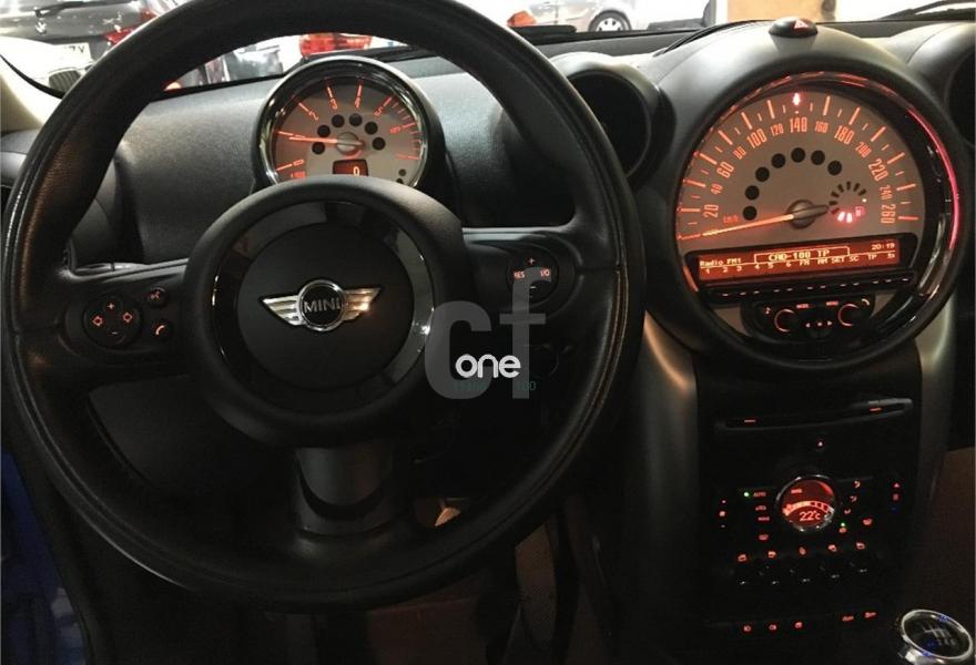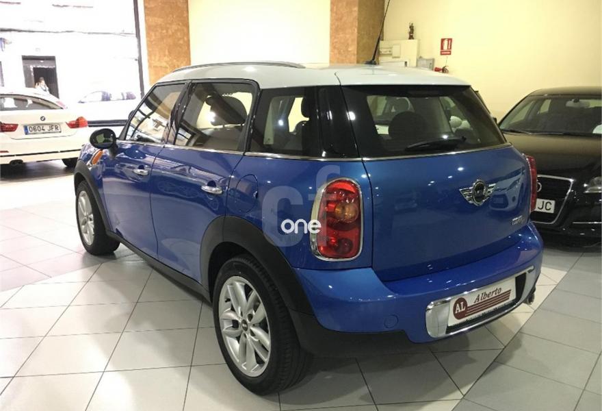 MINI Countryman, Diesel, año 2011, 100500 kilómetros, color Azul (Techo Blanco) metalizado, precio 14500€. Asientos deportivos delanteros,Reposabrazos delantero,Paquete de compartimentos,Volante deportivo de cuero de tres brazos,Tela/cuero Parallel Lines,Alfombrillas de velours,Kit Bluetooth manos libres con puerto USB,Ordenador de a bordo,Radio MINI Boost CD,Climatizador automático,Control Dinámico de Tracción (DTC),Intermitentes en blanco,Líneas blancas en el capó,Llantas de aleación ligera de color plata,Paquete de luces interiores,Retrovisor interior antideslumbrante automático,Segunda llave con mando a distancia,Sensor de lluvia y encendido automático de luces,Techo solar eléctrico corredizo. Inclinable de cristal en parte delantera y trasera,Volante multifunción con control de crucero,Pintura metalizada,Función Start/Stop automática. VEHICULO NACIONAL CON LIBRO DE MANTENIMIENTO AL DIA, MUY EQUIPADO..