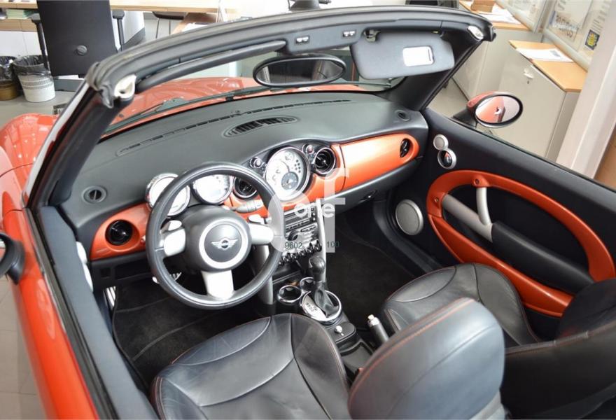 MINI MINI, Gasolina, año 2005, 145000 kilómetros, color Naranja metalizado, precio 9000€. Cuero Gravity (Cooper S),Capota de lona azul,Faros Xenón c/sistema lavado (Cooper S),Sensor lluvia y encendido automát. faros,Volante deportivo de cuero (Cooper S),Volante multifunción con control crucero,Deflector de viento,Llantas aleación 5 estrellas (Cooper S),Pintura metalizada,Control Steptronic desde el volante,Transmisión automática (Cooper S). En el precio está incluido el IVA, garantía y transferencia.