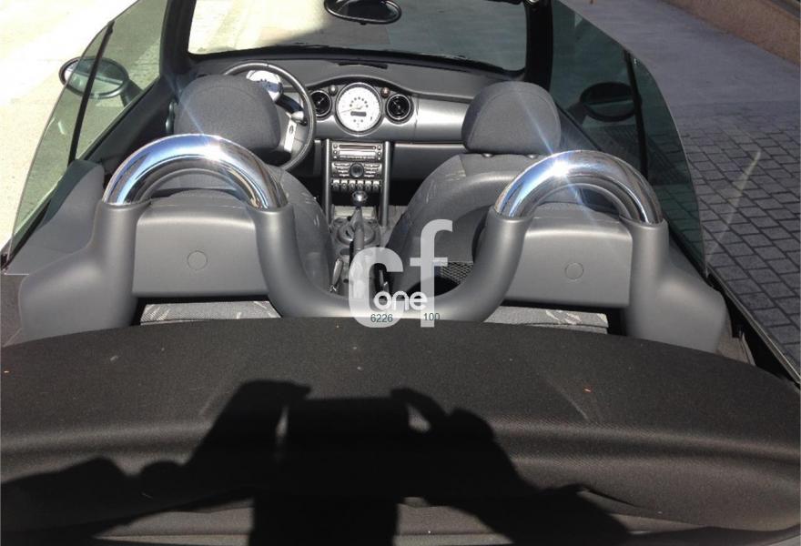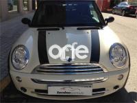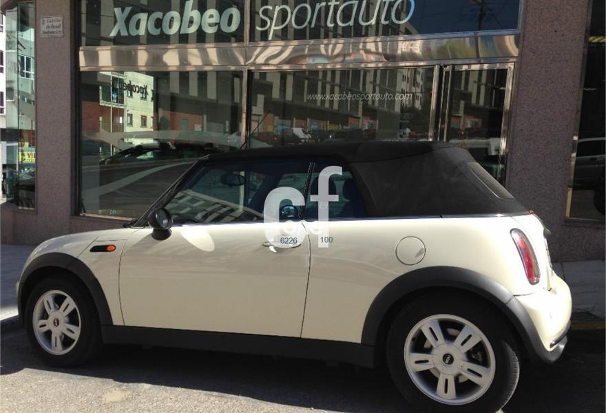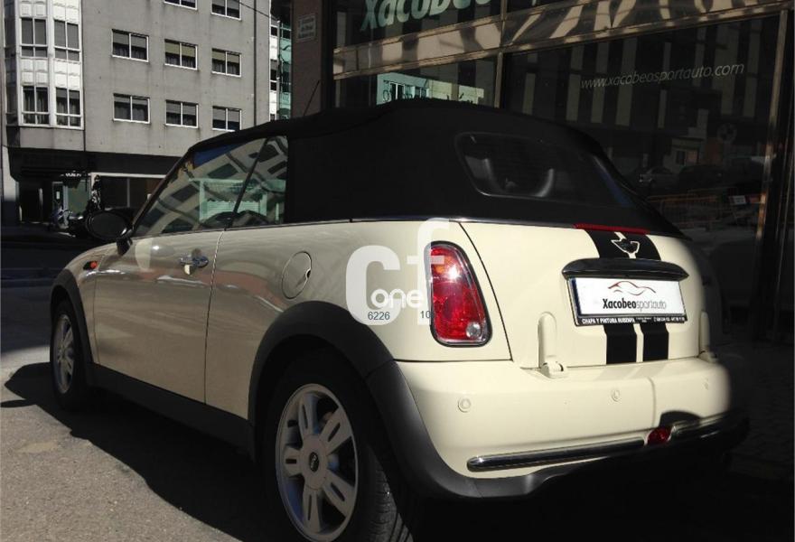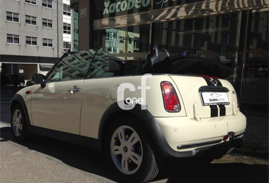 MINI MINI, Gasolina, año 2009, 85000 kilómetros, color Blanco (marfil) , precio 10900€. Paquete Pepper,Alfombrillas de velours,Asiento del acompañante con ajuste en altura,Paquete de compartimentos,Revestimiento interior en efecto aluminio,Tela Dragon Panther Black,Ordenador de a bordo,Preparación de teléfono,Advertencia acústica cinturón de seguridad,Capota en Negro,Alarma,Climatizador automático,Faros antiniebla,Intermitentes en blanco,Paquete de visibilidad,Paquete de luces interiores,Preparación para cargador CD,Retrovisor interior antideslumbrante automático,Segunda llave con mando a distancia,Volante deportivo de cuero,Llantas de aleación Bridge Spoke,Paquete de retrovisores exteriores,Pepper White (sólido),Airbag de pasajero desconectable,Anclaje de asiento infantil ISOFIX,Control de tracción (ASC+T),Control Dinámico de Estabilidad (DSCIII). Vehículo cabrio cuatro plazas, en perfecto estado tanto exterior como interior, color marfil con franjas longitudinales negras, capota eléctrica en negro, climatizador, control de aparcamiento trasero, volante de cuero, llantas de aleación, control de presión de neumáticos, espejos eléctricos, etc. xacobeosportauto.com.