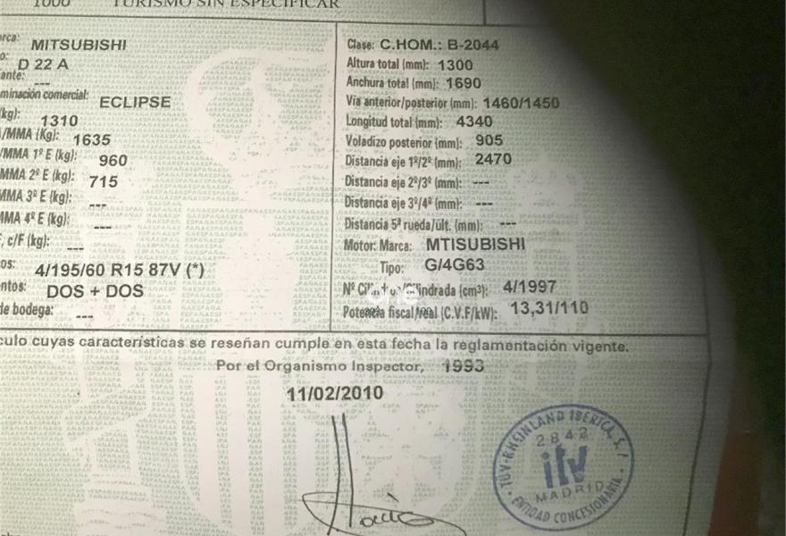 MITSUBISHI Eclipse, Gasolina, año 1993, 195000 kilómetros, color Rojo , precio 899€. el coche se vende para despiece entero o por piezas el motor suena muy bien y esta funcionando correctamente solo que se le tienen que hacer pintura entera posibilidad de venta entero documentación al día .