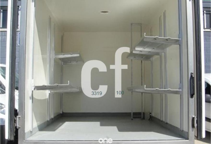 Doble puerta trasera + puerta lateral . Caja preparada con estanterías para alimentacion.