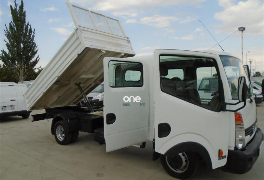 NISSAN CABSTAR VOLQUETE BASCULANTE 140 CV, año 2013, 61228 kilómetros, precio 17600€. NISSAN CABSTAR VOLQUETE BASCULANTE 35.14 140 CV CHASIS DOBLE CABINA CAJA ABIERTA RUEDA DOBLE, 17600+IVA=21296 € 6 VELOCIDADES, AIRE ACONDICIONADO, 6 VELOCIDADES, RADIO CON MANOS LIBRES BLUETOOTH Y USB, CAJA DE 3,40 M LARGO X 1,78 M DE ANCHO X 0,40 ALTO DE INTERIOR, CIERRE CENTRALIZADO CON MANDO, LATERALES DE ALUMINIO, ENGANCHE REMOLQUE, ELEVALUNAS ELECTRICOS, AIRBAG, ABS, ETC...
