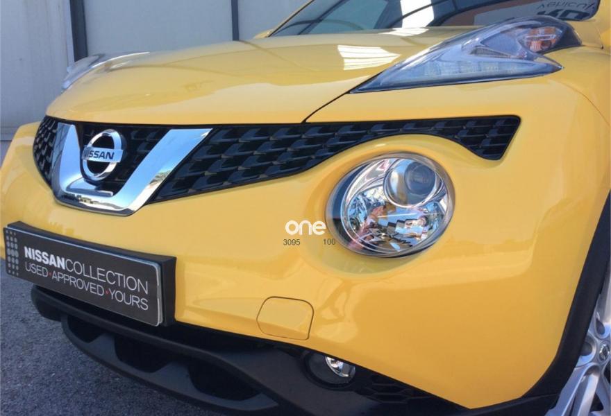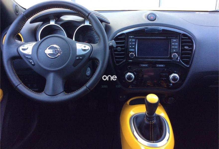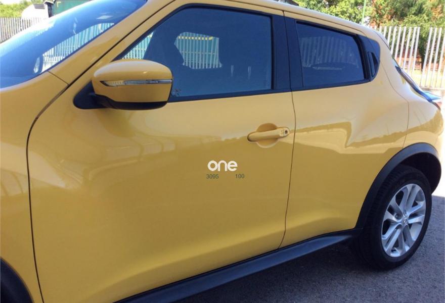 NISSAN JUKE, Diesel, año 2017, 8812 kilómetros, color Amarillo metalizado, precio 14995€. Interior Personalizado + Techo Practicable + Navegador + Cámara Trasera. Nissan JUKE usado como vehículo de demostración, con motor diésel de 110CV y versión ACENTA 4x2.