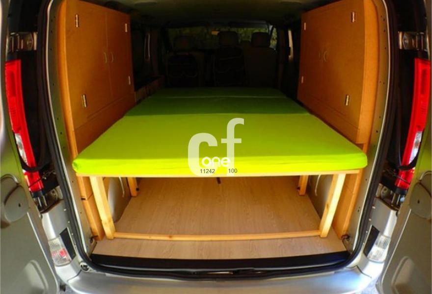 6 plazas. Nevera. Dos armarios laterales. Enchufes adicionales. Mesa plegable. Parasoles...