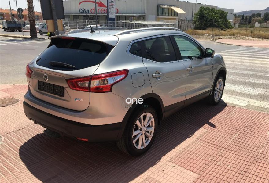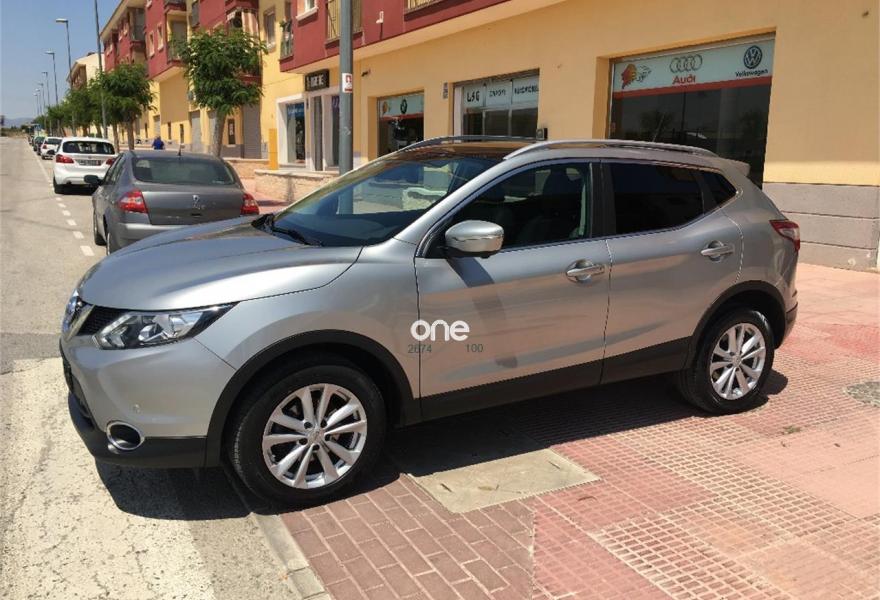 NISSAN QASHQAI, Diesel, año 2014, 96000 kilómetros, color Gris / Plata metalizado, precio 16200€. Sistema de navegación, Asientos de piel mixta negra, Faros Bi-xenón, Volante multifuncional, Sensores de aparcamiento delantero y trasero, Climatizador Bi-zona, Detector de carril, Llantas de aluminio de 17 pulgadas, Espejos eléctricos, Camara delantera, trasera y laterales, Sensor de luces, Luz de conduncion diurna, Sensor de lluvia, Bluetooth, Start Stop, Asientos calefactables, Techo paronamico, Limitador automático de velocidad, Libro de mantenimiento.