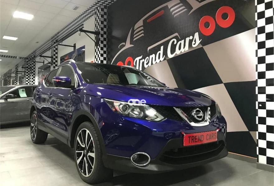 NISSAN QASHQAI, Diesel, año 2016, 8086 kilómetros, color Azul metalizado, precio 20990€. Trend Cars concesionario de referencia de la zona le ofrece un Nissan Qashqai 1.6 dCi SS Tekna, tapicería alcantara, techo de cristal, asientos delanteros calefactables, manos libres bluetooth, climatizador, volante multifuncion, GPS, pantalla táctil, sensores de luces y lluvia, retrovisores electricos, ordenador de a bordo, llantas de aleación, etc...