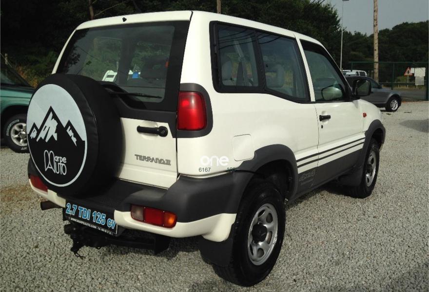 NISSAN Terrano II, Diesel, año 1999, 180000 kilómetros, color Blanco , precio 6000€. Nissan terrano II 2.7 tdi 125cv, todoterreno con traccion 4x4 y reductora, enganche de remolque, 4 ruedas nuevas, itv anual recien pasada, se entrega transferido y con garantia total de un año en nuestro taller. . se admiten cambios. --- WWW. MARPEAUTO. COM --- expo sicion en la LU-530 km 2. 400 ( salida 493 de la autovia A-6 ) en direccion Lugo asolo 800 metros..