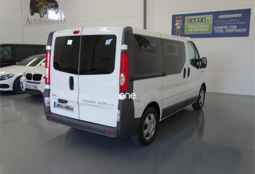 OPEL Vivaro, Diesel, año 2013, 33240 kilómetros, color Blanco (9 PLAZAS) , precio 15900€. Radio CD30 BT con caja de conexiones,Aire acondicionado delantero y trasero. La furgoneta( 9 PLAZAS) esta en perfecto estado.Tiene 12 MESES DE GARANTÍA, libro de revisiones al dia,km garantizados por escrito y certificados.Aire acondicionado,cambio automatico,elevalunas eléctricos,espejos electricos ,esp,radio cd con entrada auxiliar ,ordenador de a bordo,cristales tintados.IVA INCLUIDO Y DEDUCIBLE.Mejor Verlo.POSIBILIDAD DE FINANCIAR EL VEHICULO 100 % .ACEPTAMOS VEHICULO COMO PARTE DE PAGO. TODOS NUESTROS VEHICULOS SE ENTREGAN TOTALMENTE REVISADOS Y KILOMETROS CERTIFICADOS.ES del 12/07/2012..