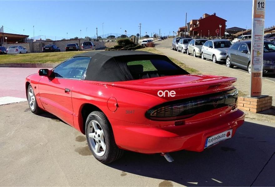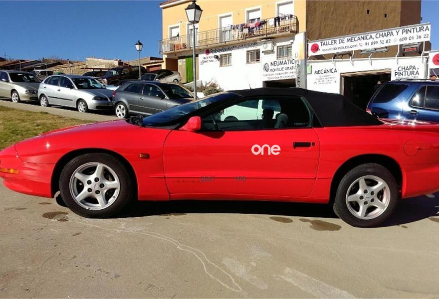 PONTIAC Firebird, Gasolina, año 1997, 113950 kilómetros, color Rojo metalizado, precio 8900€. Pontiac Firebird de 1997, 113. 950 km, 196cv, 3791cc, 6 cilindros, gasolina, 2 puertas. Equipado con ABS, airbag acompañante, airbag conductor, aire acondicionado, control de crucero, dirección asistida, elevalunas eléctricos, llantas aleación, radio cassette, retrovisores eléctricos, techo de lona, volante y palanca de cambio de cuero. Pontiac lo construyó para que General Motors siguiera punteando en los deportivos entre los años 1967 y 2002. Debe su nombre a un dios de la India que simbolizaba la acción, el poder, la belleza y la juventud.