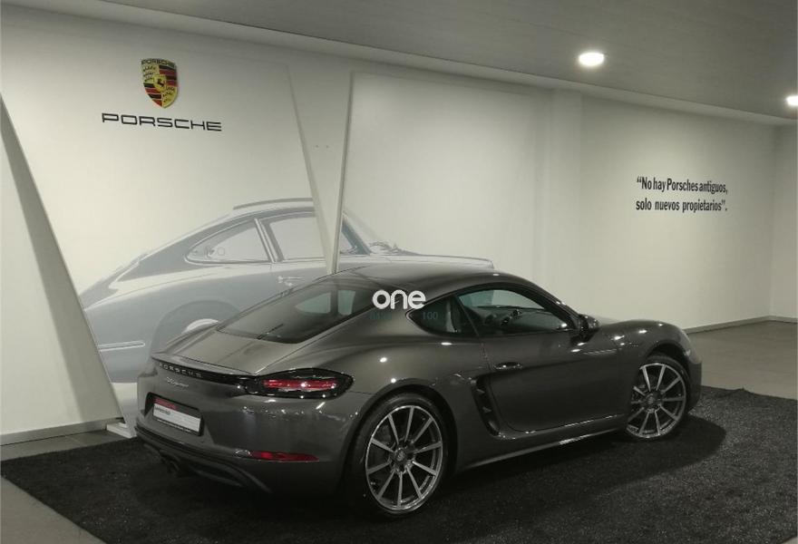 PORSCHE 718, Gasolina, año 2017, 7800 kilómetros, color Gris / Plata (Ágata) metalizado, precio 69900€. Alfombrillas,Asientos calefactables,Asientos deportivos Plus (eléctricos, 2 posiciones),Interior en cuero,Paquete fumador,Porsche Dual Clutch transmission (PDK),Climatizador automático de dos zonas,Connect Plus,Control automático de velocidad,Escudo Porsche en los reposacabezas,Luces principales LED incluyendo Porsche Dynamic Light System Plus (PDLS+),Modulo de navegación para Porsche Communication Management (PCM),Paquete Sport Chrono,Red portaobjetos en el espacio reposapiés del pasajero,Sistema de sonido BOSE® Surround Sound System,Servodirección electromecánica,Depósito de combustible de 64 litros,Llantas de 20" Carrera Classic,Pintura metalizada,Sistema de escape deportivo con salidas de escape deportivas en color negro,Sistema ayuda aparcamiento (delantero y trasero). PORSCHE 718 CAYMAN PDK.