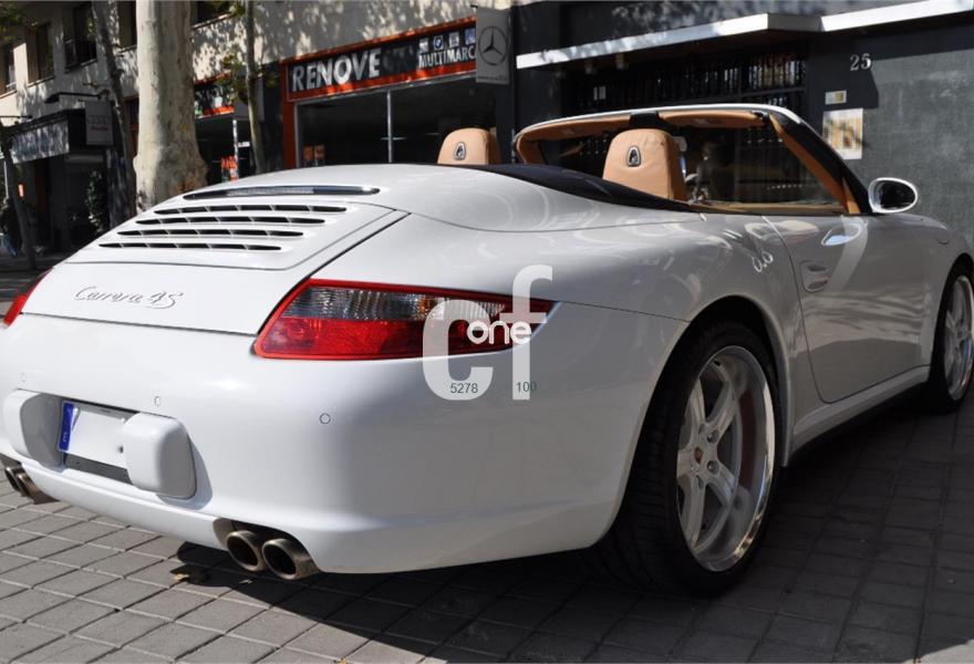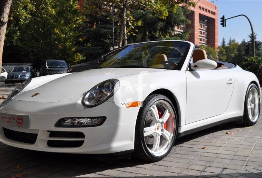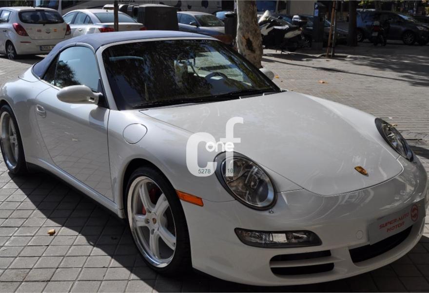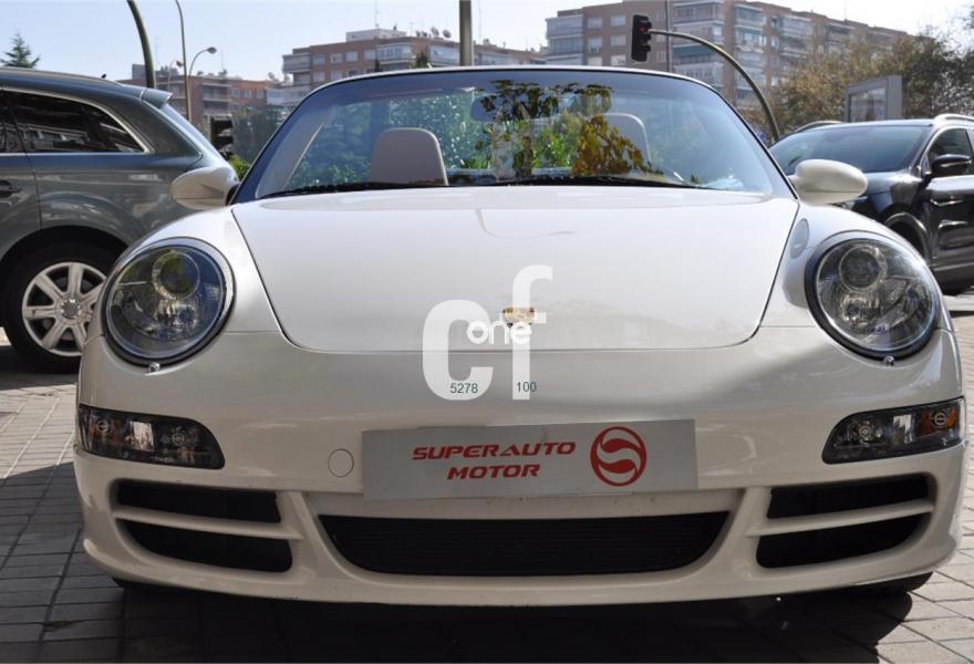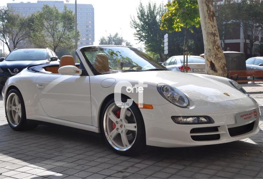 PORSCHE 911, Gasolina, año 2007, 65000 kilómetros, color Blanco (CARRARA) , precio 48900€. Asientos deportivos,Asientos en cuero Soft-Look,Cuero Especial Terracota,Kit de Plata deportivo en el salpicadero,Sistema de navegación PCM,Módulo de navegación ampliado,Módulo de teléfono,Asientos deportivos adaptables,Asientos eléctricos con memoria,Centro de llantas pintadas y con escudo,Control automático de velocidad,Cubrebujes cóncavo con escudo Porsche,Distanciadores de ruedas 5 mm.,Esferas pintadas en blanco Carrara,Paquete Sport Chrono Plus,Pomo del cambio deportivo,Procesador digital de sonido BOSE,Reposapiés en look deportivo,Volante multifunción 3 radios cuero liso,Volante multif. 3 radios plata deportivo,Blanco Carrara (sólido),Llantas de aleación Sport Evo 19",Cambio Tiptronic S,Sistema ayuda aparcamiento detrás. PORSCHE CARRERA 4S CABRIO, IMPECABLE, LIBRO DE MANTENIMIENTO AL DÍA, FACTURAS, DOS LLAVES.