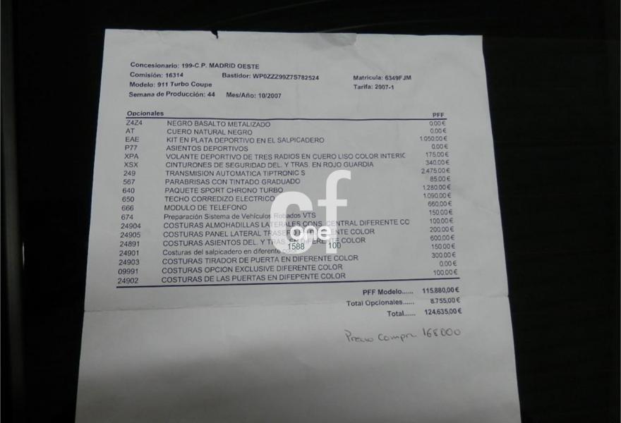PORSCHE 911, Gasolina, año 2007, 99000 kilómetros, color Negro , precio 59000€. negro basalto metalizado, cuero natural negro, kit de plata deportivo, asientos deportivos, transmisión automática tiptronic s, paquete sport chrono turbo, techo solar, matriculado en diciembre del 2006, etc. -------------------------------------------------------------