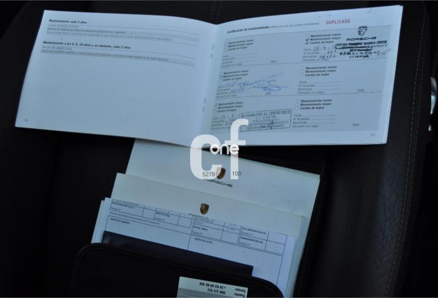 Climatizador digital, Cambio tiptronic, Tapicería cuero natural negro, Asientos deportivos, eléctricos con memorias y ajuste lumbar y lateral, Techo corredizo, interiores techo alcantara negro, suspensión deportiva, escudo en reposa brazos central, Sistema de Navegación PCM, Modulo de Teléfono, Volante multi función con levas para cambio, esferas interiores cuadro blanco deportivo, Asientos con calefacción, escudos Porsche en cubre bujes, Sensor de aparcamiento trasero, Faros bi xenón, Control de velocidad de crucero, cargador de cd´s.