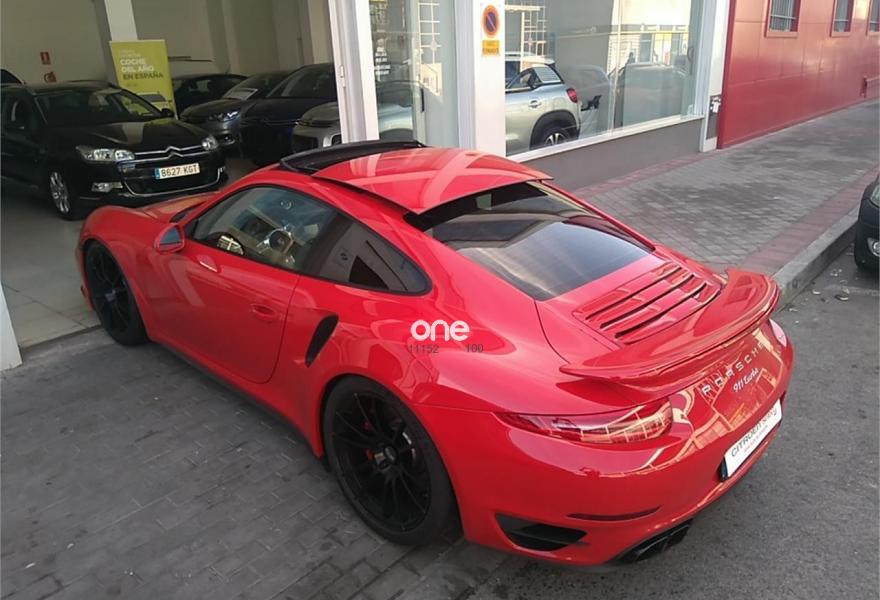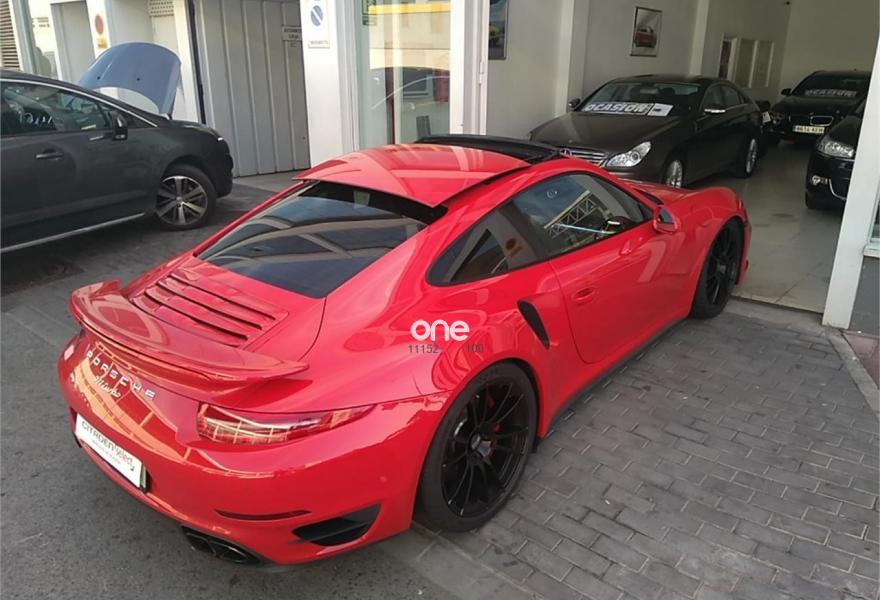 PORSCHE 911, Gasolina, año 2014, 31000 kilómetros, color Rojo metalizado, precio 124999€. Indicador del límite de velocidad,Alfombrillas,Asientos delanteros calefactables,Asientos delanteros deportivos en cuero,Asientos delanteros ventilados,Interior en cuero en color a elegir,Homelink - Sistema de apertura de garage,Volante multifunción de tres radios,Transmión automática (PDK),Acabados de puerta en cuero,Control automático de velocidad,Kit de iluminación interior,Kit interior en cuero,Kit Sport Chrono,Llantas pintadas en color negro acabado brillante,Llave del vehículo pintada,Luces LED incl. Porsche Dynamic Light System (PDLS),Luz dinámica de curva,Paquete interior ampliado del salpicadero en cuero,Paquete interior ampliado paneles de puerta en cuero,Paquete interior ampliado parte trasera en cuero,Paquete interior de cuero,Paquete Sport Chrono Plus,Techo eléctrico corredizo y deflector,Volante SportDesign en Alcántara,Rojo Guardia (sólido),Paquete Sport Chrono Plus para transmisión automática PDK,Volante deportivo con levas para PDK,Anclaje para ISOFIX en asiento delantero derecho,Sistema ayuda aparcamiento detrás. PORSCHE 911 TURBO 520CV (991 MKI) PDK, TECHO SOLAR, ASIENTOS EN CUERO+VENTILADO+CALEFACTABLES Y ELÉCTRICOS CON MEMORIA, ASISTENTE DE APARCAMIENTO DEL Y TRAS, NAVEGACION, PAQUETE SPORT CRONO PLUS, PDK, CONTROL A DISTANCIA ACC, SERVOTRONIC, MUELLES HELICOIDALES KW, LLANTAS OZ HTL ULTRALIGERAS DE 19", LATIGUILLOS DE FRENOS METALICOS, ASIENTOS DEPORTIVOS ADAPTATIVOS P07 PLUS, PASM+PDCC, PTV PLUS Y PTM, FAROS LED+LUZ DE CURVA DINÁMICA, PREPARACION PARA TLF BLUETOOTH, ESPEJOS EXT ELÉCTRICOS Y CALEFACTABLES, VOLANTE DEPORTIVO EN ALCANTARA Y CON LEVAS, TECHO SOLAR ELECTRICO RECUBIERTO CON ALCÁNTARA, CONTROL DE PRESION NEUMATICOS RDK, DIRECCIÓN ACTIVA EN EJE TRASERO, SERVOTRONIC, PALANCA RECUBIERTA EN ALCANTARA, ISOFIX EN EL LADO ACOMPAÑANTE Y ASIENTOS TRASEROS, SPORT Y SPORT PLUS, INDICADOR DE LIMITE VELOCIDAD. ETC.