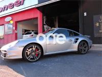 PORSCHE 911, Gasolina, año 2010, 78000 kilómetros, color Gris / Plata metalizado, precio 91800€. Alfombrillas con ribete en cuero y logo Porsche,Asientos deportivos,Asientos deportivos adaptables,Calefacción en asientos delanteros,Palanca de cambios y freno de mano en aluminio II,Cargador de CD Porsche "CDC4" 6 discos,Módulo teléfono conjuntamente con PCM,Preparación para teléfono móvil,Cambio Tiptronic S,Aerokit Turbo,Control automático de velocidad,Óptica trasera en rojo,Paquete Sport Chrono Plus,Parte posterior de la consola central en cuero,Pomo del cambio deportivo,Reposapiés en look deportivo,Gris Atlas (metalizado),Sistema ayuda aparcamiento detrás. CUERO COMPLETO NEGRO