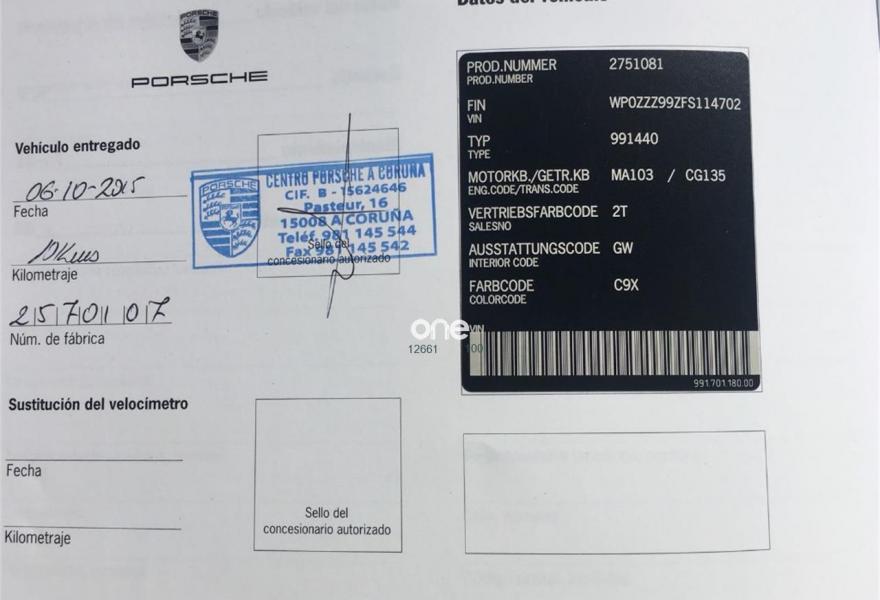 PORSCHE 911, Gasolina, año 2015, 25190 kilómetros, color Negro (JET) metalizado, precio 129900€. Asientos delanteros calefactables,Asientos deportivos Plus con 4 posiciones (manualmente),Paquete interior GTS,Módulo teléfono conjuntamente con PCM,Radio digital,Sistema de comunicación Porsche Communication Management (PCM) incuyendo modulo de navegación,Sistema de sonido BOSE Surround,Volante multifunción en cuero,Asientos en cuero, negro,Control automático de velocidad,Control de voz,Designación de modelo 911,Escudo Porsche en los reposacabezas,Faros de Xenon en negro incl. Posche Dynamic Light System (PDLS),Kit de iluminación interior,Kit Sport Chrono II con transmisión PDK,Llave del vehículo pintada en color exterior,Luces LED incl. Porsche Dynamic Light System (PDLS),Parabrisas con tintado graduado (tonalidad gris),Registro electrónico de rutas,Retrovisores exteriores Sport Design,Salidas de escape deportivas,Sistema de audio CDR Plus (España),Techo eléctrico corredizo y deflector,Volante SportDesign en Alcántara con levas para PDK,Llantas 911 Turbo 20",negro jet metalizado,Retrovisores exteriores eléctricos plegables,Retrovisores interiores antideslumbrantes automáticos y sensor de lluvia,Sistema de escape deportivo,Supresión designación lateral "GTS",Suspensión deportiva PASM (-20 mm) incluyendo PDCC,Porsche Dynamic Chassis Control (PDCC),Porsche Doppelkupplung (PDK) - Transmisón automática de doble embrague,Sitema ayuda aparcamiento delantero y trasero incl. cámara de marcha atrás. PORSCHE 911 (991) CARRERA 4 GTS COUPÉ PDK FULL EQUIPE !!! 430 CV, MOTOR ATMOSFÉRICO, ÚNICO POR ESTADO Y EQUIPAMIENTO !!! DISPONIBLE PARA ENTREGA INMEDIATA. 1 SÓLO PROPIETARIO, COMPRADO Y MANTENIDO EN CENTRO OFICIAL. EXCELENTE ESTADO !!!