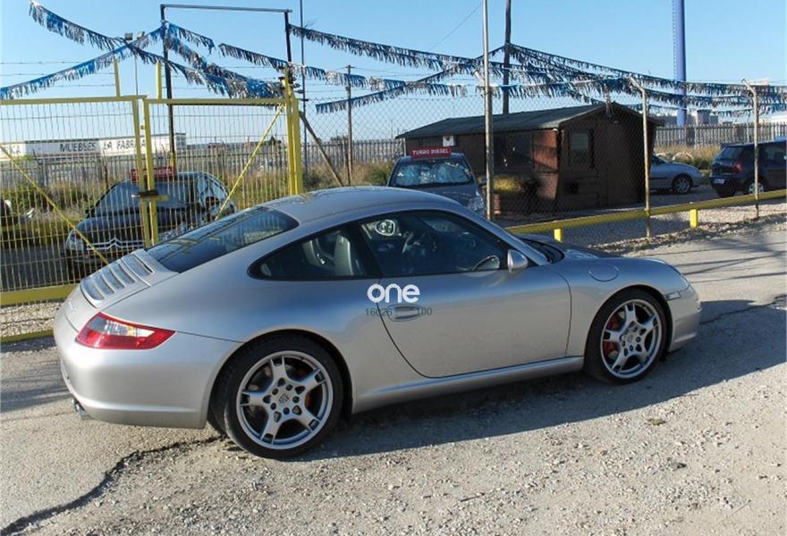 PORSCHE 911, Gasolina, año 2007, 58000 kilómetros, color Gris / Plata metalizado, precio 58000€. Alfombrillas con ribete en cuero y logo Porsche,Asientos deportivos,Asientos en cuero Soft-Look,Consola central tras. cuero color inter.,Cuero Natural Azul Mar,Cuero Natural Azul Mar (asientos deportivos),Módulo de navegación ampliado,Módulo de teléfono,Control automático de velocidad,Escudo Porsche en reposacabezas delant.,Paquete Sport Chrono Plus,Parabrisas con tintado graduado,Tubos de escape en acero cromado,Gris Atlas (metalizado),Pintura metalizada,Suspensión deportiva.