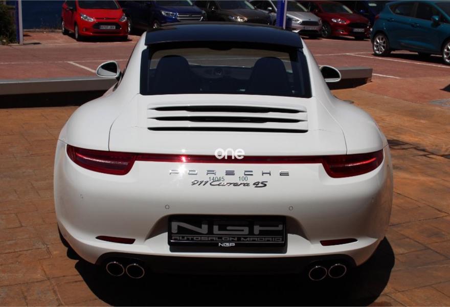 PORSCHE 911, Gasolina, año 2014, 28000 kilómetros, color Blanco (Weiss) , precio 109000€. Indicador del límite de velocidad,Paquete opciones comfort,Alfombrillas personalizadas Porsche con logo Porsche y ribete en cuero,Asientos delanteros calefactables,Asientos deportivos Plus con 4 posiciones (manualmente),Interior en cuero en color a elegir,Interior en cuero en color especial,Selector PDK en aluminio,Módulo teléfono conjuntamente con PCM,Sistema de sonido BOSE Surround,Volante multifunción en cuero,Porsche Doppelkupplung (PDK) - Transmisón automática de doble embrague,Transmión automática Porsche Doppelkupplung (PDK),Asientos en cuero natural bicolor espresso/cognac,Designación de modelo 911,Faros de Xenon en negro incl. Posche Dynamic Light System (PDLS),Kit de iluminación interior,Kit Sport Chrono II con transmisión PDK,Kit SportDesign,Llave del vehículo pintada en color exterior,Luces Bixenon incluyendo Porsche Dynamic Light System (PDLS),Luces LED incl. Porsche Dynamic Light System (PDLS),Personalización del selector de PDK,Porsche Entry & Drive (Kessy),Techo eléctrico corredizo y deflector (en cristal),Volante SportDesign con levas para PDK,Blanco (sólido),Llantas Sport Design 20",Retrovisores interiores antideslumbrantes automáticos y sensor de lluvia,Porsche Dynamic Chassis Control (PDCC),Anclaje para ISOFIX en asiento delantero derecho,Extintor de incendios,Sistema ayuda aparcamiento delantero y trasero. 911 991 4s PDK, único proletario , libro de revisiones oficial , todos los extras posibles , dos llaves del mismo color carrocería .