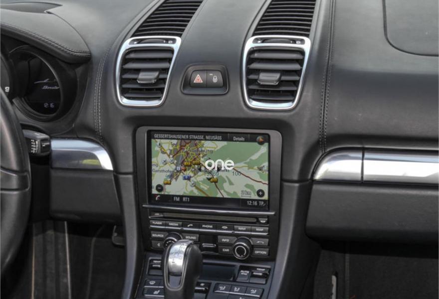 Porsche 981 Boxster basalto negro metálico, interior de cuero en color negro, cuero liso