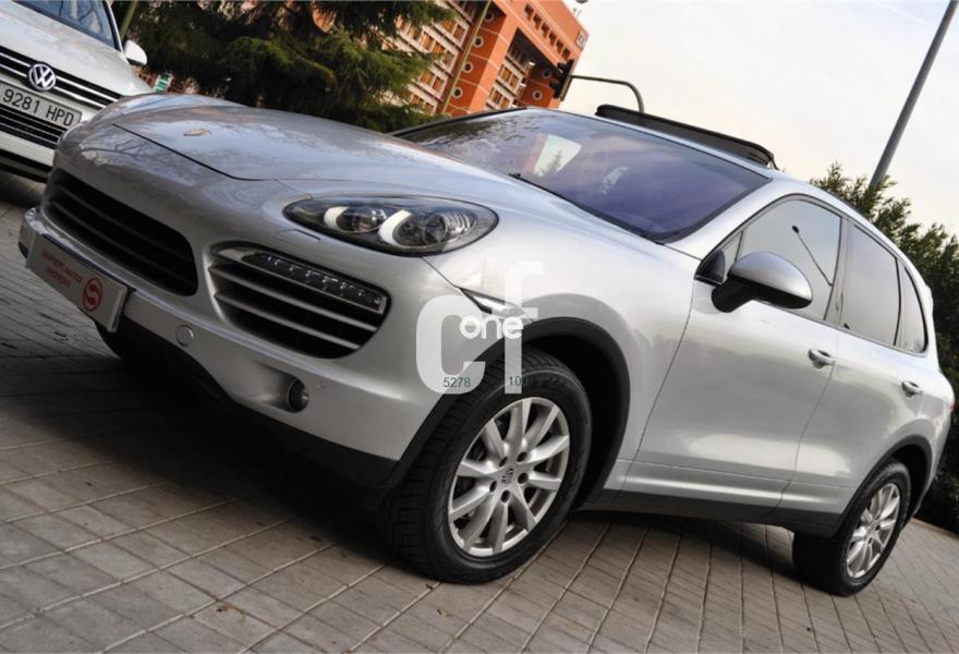 PORSCHE Cayenne, Diesel, año 2012, 97000 kilómetros, color Gris / Plata metalizado, precio 47900€. Reconocimiento de límites de velocidad,Alfombrillas,Asientos en cuero liso fruncido "Soft Look",Paquete aluminio deportivo,Acceso a internet wireless (con PCM),Cargador de CD/DVD, 6 discos,Interfaz para reproductor externo en combinación con PCM,Módulo de teléfono,PCM (Porsche Communication Management) con módulo de navegación,Sistema digital de sonido de altas prestaciones (BOSE),Cámara para marcha atrás incluyendo Sistema de ayuda aparcamiento (delantero y trasero),Control de velocidad adaptativo,Control de voz para navegación teléfono y audio,Elementos del salpicadero en cuero color interior,Kit iluminación confort,Luces Bi-Xenon y Sistema Dinámico de Luces PDLS,Pasos de puerta personalizados, iluminados,Selector Tiptronic S en Aluminio,Sistema de monitorización de la presión de los neumáticos (PTM),Sistema de techo panorámico,Volante con asistencia en función de la velocidad (Servotronic),Volante multifunción de tres radios en cuero,Cristales térmicos laminados,Cristales tintados,Suprensión designación de modelo Porsche,Volante deportivo de tres radios con levas,ISOFIX para fijar sillas de bebe en el asiento pasajero,Sistema de ayuda aparcamiento (delantero y trasero). Climatizador bi zona digital