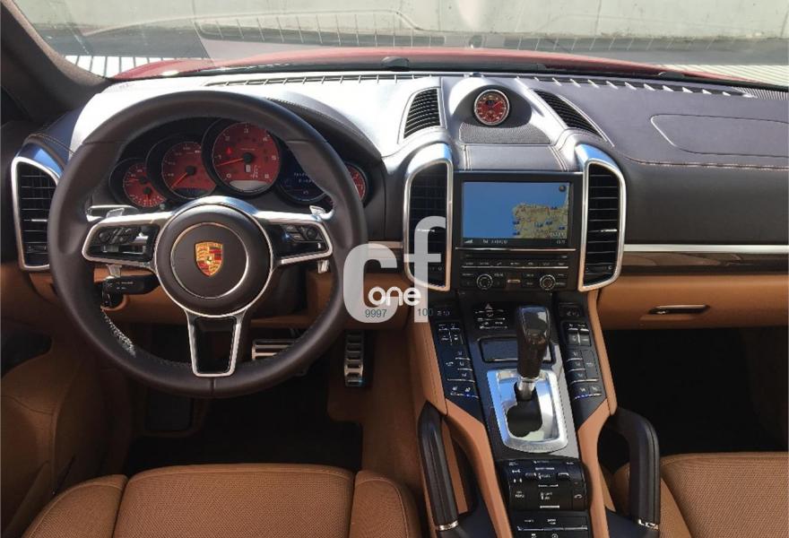 PORSCHE Cayenne, Diesel, año 2015, 94990 kilómetros, color Rojo , precio 79990€. Reconocimiento de límites de velocidad,Paquete interior cuero ampliado Plus,Asientos delanteros ventilados,Asientos en cuero natural fruncido (con interior en piel natural),Calefacción de asientos delanteros,Interior cuero natural bicolor,Paquete interior en carbono,Módulo de teléfono,Preparación para teléfono móvil,Asientos deportivos adaptables con paquete memoria confort,Cámara de marcha atrás incluyendo Sistema de ayuda aparcamiento (delante y detrás),Cinturones en color rojo Garnet,Climatizador de cuatro zonas,cuero natural bicolor espresso-cognac,Elementos del salpicadero en cuero,Esfera de brújula /Sport chrono en Rojo Garnet,Esferas en color Rojo Garnet,Faros LED incluy. Porsche Dynamic Light System (PDLS),Llave del vehículo pintada,Luces traseras LED en color negro con luz de freno adaptativa,Paquete de iluminación confort en combinación con paquete de memoria confort ó paquete memoria conductor,Paquete Sport Chrono,Parabrisas térmico,Porsche Entry & Drive,Servotronic,Sistema de techo panorámico,Depósito de combustible de 100 litros,Cristales tintados,Llantas Cayenne Sport Classic 21" con revestimiento pasos de rueda,Paquete Sportdesign con faldones laterales,Raíles de techo con molduras de protección en aluminio,Retrovisor interior y exteriores antideslumbrantes automáticos en combinación con paquete de memoria confort o paquete de memoria conductor,Rojo Karmin (pintura especial),Sistema de transporte en techo y raíles de techo en aluminio,Suspensión neumática y sistema de suspensión activa Porsche Active Suspension Management (PASM). Espectacular y exclusiva unidad de PORSCHE CAYENNE S DIESEL en un estado de REESTRENO y absolutamente equipado.