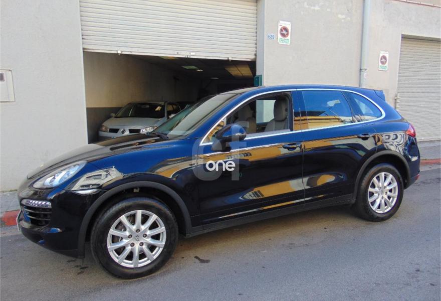 PORSCHE Cayenne, Diesel, año 2011, 245000 kilómetros, color Negro metalizado, precio 28990€. Asientos delanteros calefactables,Alfombrillas,Asientos en cuero natural fruncido "Soft Look",Interior en cuero natural,Paquete aluminio deportivo,Interfaz para reproductor externo,Módulo de teléfono,PCM (Porsche Communication Management) con módulo de navegación,Preparación para teléfono móvil,Asientos deportivos adaptables con memoria,Climatizador de cuatro zonas,Control de velocidad adaptativo,Control de voz para navegación teléfono y audio,Cortinillas solares eléctricas en ventanillas laterales traseras,Filo espoiler de techo pintado,Kit iluminación confort,Luces Bi-Xenon y Sistema Dinámico de Luces PDLS,Paquete exterior monocromo en negro,Parabrisas térmico,Sistema cierre centralizado con mando a distancia y sistema adicional de seguridad (Porsche Entry & Drive),Sistema de monitorización de la presión de los neumáticos (PTM),Sistema de sonido envolvente Burmester,Todo Cuero Color Estándar Liso Gris Platino,Volante multifunción de tres radios en cuero,Protección de bajos todo terreno,Pintura exterior en color especial,Negro Jet (metalizado),Retrovisor interior y exteriores antideslumbrantes automáticos en combinación con kit de memoria confort o kit memoria conductor,Volante deportivo de tres radios con levas,Sistema Porsche de Suspensión Activa (PASM),Airbags laterales detrás,Sistema de ayuda aparcamiento (delantero y trasero). Porsche Cayenne 3.0 Diésel 245cv Automático con levas