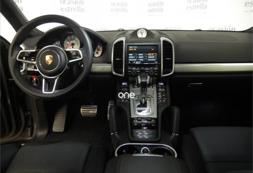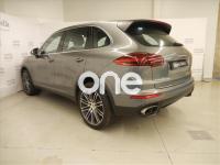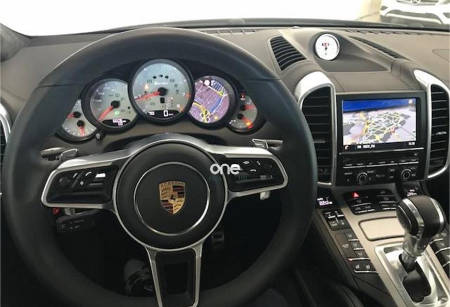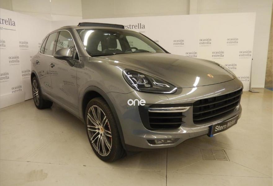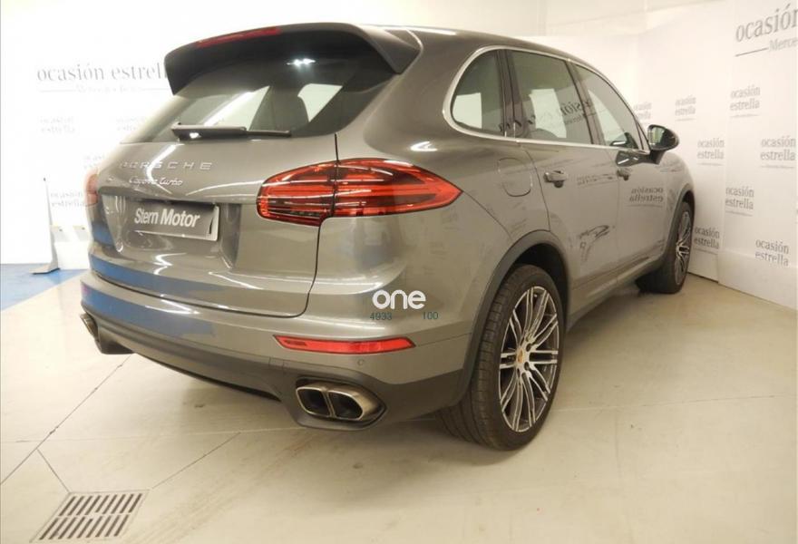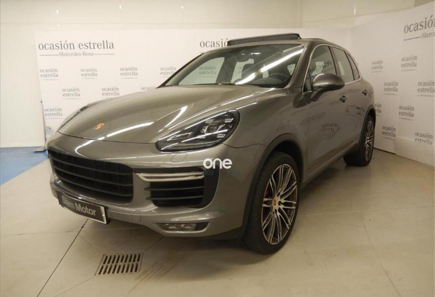 PORSCHE Cayenne, Gasolina, año 2016, 6598 kilómetros, color Gris / Plata metalizado, precio 98000€. Asientos delanteros ventilados,Alfombrillas,Porsche Torque Vectoring Plus (PTV Plus),Escudo Porsche en reposacabezas delanteros,Anclaje para ISOFIX en asiento delantero derecho,Reconocimiento de límites de velocidad,Climatizador de cuatro zonas,Porsche Dynamic Chassis Control (PDCC),Asistente de cambio de carril (LCA),Cámara de marcha atrás incluyendo Sistema de ayuda aparcamiento (delante y detrás),Módulo de teléfono,Selector Tiptronic S en aluminio,Pintura metalizada,Cortinillas eléctricas para las ventanillas traseras,Parasoles en cuero,Llave del vehículo pintada,Paquete Sport Chrono,Esferas en color blanco,Llantas 911 Turbo Design 21" con revestimiento pasos de rueda,Esfera de brújula /Sport chrono en blanco,Cubrebujes con escudo Porsche en color,cuero liso negro,Servotronic,Sistema de techo panorámico,Gris Meteor (metalizado). Vehículo completamente equipado, en perfecto estado y revisado por nuestro concesionario MERCEDES-BENZ.