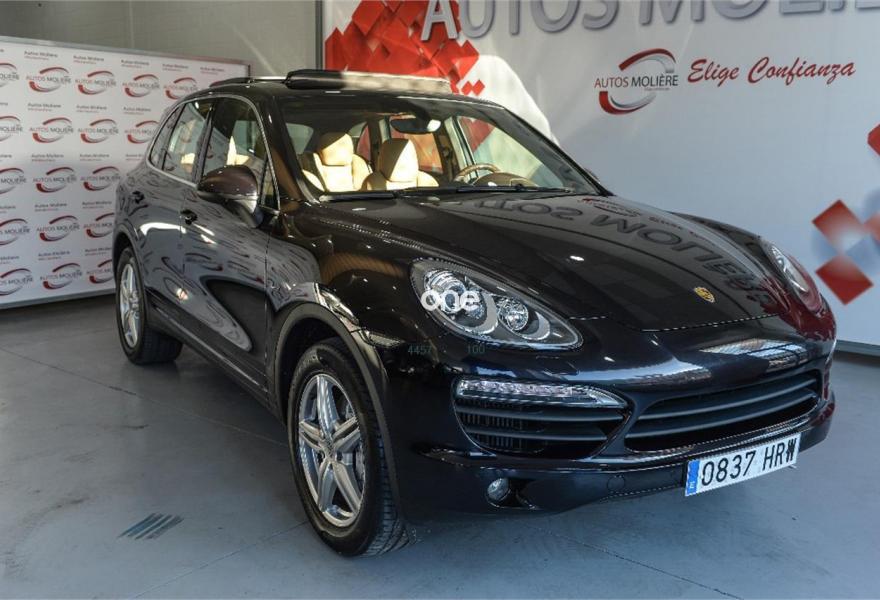 PORSCHE Cayenne, Diesel, año 2013, 59300 kilómetros, color Negro metalizado, precio 51990€. Paquete de madera oscura (acabado brillante),Paquete aluminio deportivo,PCM (Porsche Communication Management) con módulo de navegación,Cuero Parcial Color Estándar Rugoso Beige Luxor,Esfera de la brújula del panel de instrumentos pintada en Blanco,Sistema de techo panorámico,Llantas Cayenne Design II 19'',Pintura metalizada,Volante deportivo de tres radios con levas. AUTOS MOLIERE donde la confianza y transparencia van de serie, siendo uno de los concesionarios mejor valorados por sus clientes.