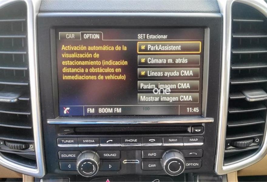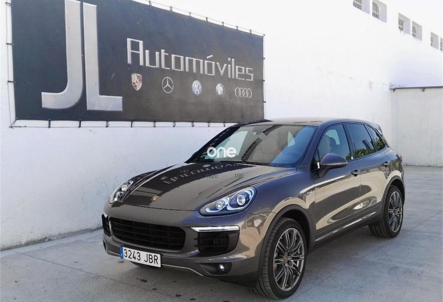 PORSCHE Cayenne, Diesel, año 2015, 40000 kilómetros, color Marrón (NACIONAL, PRECIOSO INTERIOR BICOLOR) metalizado, precio 58000€. Asistente de aviso de salida de carril con asistente de cambio de carril - Lane Change Assist (LCA),Asientos delanteros calefactables,Calefacción de asientos delanteros,PCM (Porsche Communication Management) con módulo de navegación,Volante multifunción de tres radios en cuero,Asientos deportivos adaptables con memoria,Asistente de cambio de carril (LCA),Cámara de marcha atrás incluyendo Sistema de ayuda aparcamiento (delante y detrás),Cierre/apertura eléctrica del portón del maletero,Climatizador de cuatro zonas,Control de voz para navegación teléfono y audio,Cortinillas solares eléctricas en ventanillas laterales traseras,cuero beige luxor,Faros Bi-Xenon y Sistema Dinámico de Luces PDLS,Luces Bi-Xenon y Sistema Dinámico de Luces en Negro (incluy.PDLS),Luces traseras Led tintadas en negro,Moldura de protección de bajos en acero (delante y detrás),Paquete de iluminación confort,Paquete memoria Confort (14 memorias),Parabrisas térmico en combinación con cristales térmicos laminados,Placa de protección de bajos delantera y trasera, en acero inoxidable,Selector Tiptronic S en aluminio,Servotronic,Sistema dinámico de luces Plus (PDLS Plus),Depósito de combustible de 100 litros,Cristales tintados,Llantas 911 Turbo Design 21" con revestimiento pasos de rueda,Retrovisor interior y exteriores antideslumbrantes automáticos en combinación con kit de memoria confort o kit memoria conductor,Sistema de Suspensión Activa Porsche Active Suspension Management (PASM),Suspensión neumática con control de nivel automático y regulador de altura más sistema de Suspensión Activa Porsche (PASM),Volante deportivo de tres radios con levas,Airbags laterales detrás,Sistema de ayuda aparcamiento (delantero y trasero). JL AUTOMOVILES
