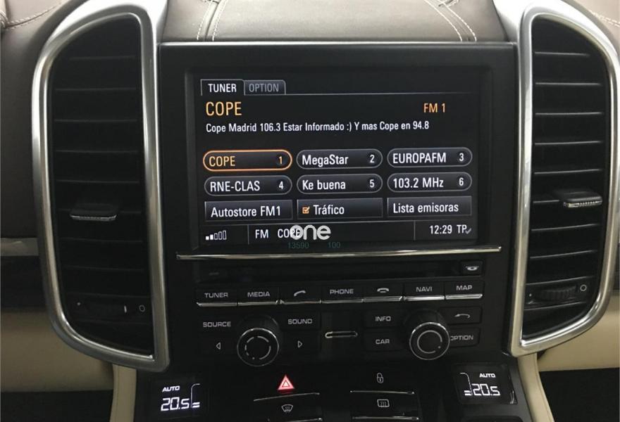 PORSCHE Cayenne, Diesel, año 2013, 84000 kilómetros, color Negro metalizado, precio 42990€. Asientos delanteros calefactables,Interior cuero bicolor,Interior cuero natural bicolor,Interfaz para reproductor externo,Interfaz para reproductor externo en combinación con PCM,Módulo de teléfono,PCM (Porsche Communication Management) con módulo de navegación,Sistema digital de sonido de altas prestaciones (BOSE),Cierre/apertura eléctrica del portón del maletero,Cuero Bitono Beige Luxor/Crema,Sistema de techo panorámico,Volante multifunción de tres radios en cuero,Depósito de combustible de 100 litros,Negro Jet (metalizado),Pintura metalizada,Sistema Porsche de Suspensión Activa (PASM),Suspensión neumática con control de nivel automático y regulador de altura más sistema de Suspensión Activa Porsche (PASM),Volante deportivo de tres radios con levas. VEHÍCULO EN PERFECTO ESTADO, MATRICULADO 04/12/2012, LIBRO DE REVISIONES EN SERVICIO OFICIAL PORSCHE, ÚLTIMA REVISIÓN 11/04/2018 EN SERVICIO OFICIAL PORSCHE, CAMBIO AUTOMÁTICO 8 VELOCIDADES. CUERO BICOLOR MARRÓN /BEIGE, SUSPENSIÓN NEUMÁTICA, PCM, PDC, SISTEMA START/STOP, VOLANTE DE CUERO MULTIFUNCIÓN DE TRES RADIOS , LED DIURNOS, TECHO PANORÁMICO, DEPOSITO 100 LITROS, PORTÓN TRASERO AUTMÁTICO, SISTEMA DE SONIDO BOSE, BLUETOOTH, SENSORES APARCAMIENTO, SENSOR LUCES Y LLUVIA, ETC....2 AÑOS GARANTÍA MECÁNICA Y TRANSFERENCIA AL NUEVO TITULAR INCLUIDOS EN EL PRECIO.
