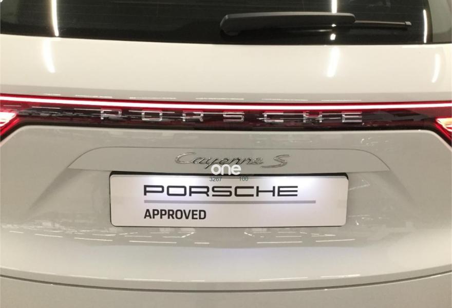 PORSCHE Cayenne, Gasolina, año 2018, 3500 kilómetros, color Blanco , precio 117500€. Indicador de límites de velocidad,Asientos confort delanteros (14 posiciones, eléctricos) con paquete de memoria,Asientos delanteros calefactables,Asientos delanteros ventilados,Paquete interior en Aluminio Pulido,Iluminación ambiente,Faros principales LED-Matrix incl. Porsche Dynamic Light System Plus (PDLS+),Interior en cuero Negro,Sistema de techo panorámico,Servodirección Plus,Volante deportivo multifunción calefactable con levas,Blanco,Llantas de 21" RS Spyder Design incluyendo revestimientos de pasos de puerta en color exterior,Retrovisores interior y exteriores antideslumbrantes automáticos,Suspensión neumática y sistema de suspensión activa Porsche Active Suspension Management (PASM),Asistente de aviso de carril e indicador de límites de velocidad,Asistente de visión nocturna,Cámara de marcha atrás,Porsche Dynamic Chassis Control (PDCC). Nuevo Porsche Cayenne S. Espectacular versión del nuevo SUV deportivo de Porsche. Esta versión ha sido lanzada al mercado a finales del 2017. Unidad semi nueva con 3.500 km. Matriculado en Marzo 2018. Cayenne S con motor Bi-Turbo de 440 cv. Cambio automático Tiptronic de 8 velocidades. 0-100 km/h en 5,2 segundos. Muy bien equipado destaca el interior completamente en cuero negro, suspensión neumática y activa, climatizador de 4 zonas, asientos delanteros ventilados y calefactados, cámara de infrarrojos para visión nocturna, techo panorámico de cristal, llantas de 21", asientos delanteros con 14 movimientos eléctricos y memoria, cámara trasera, asistente de cambio de carril y reconocimiento de señales de tráfico, retrovisores anti-deslumbrantes, iluminación ambiental, pantalla 12" táctil con navegador, conexión a internet, Apple Car Play y Porsche Car Connect..