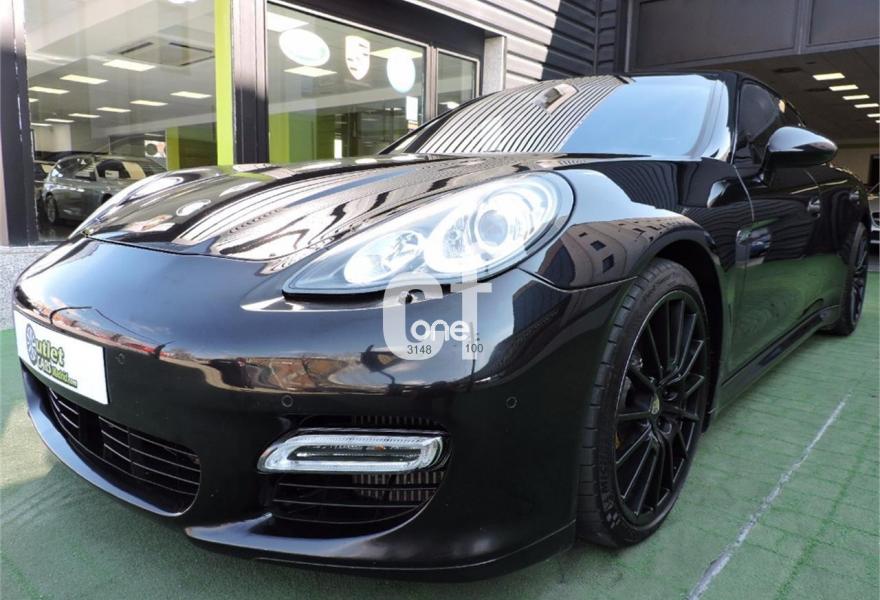 PORSCHE Panamera, Gasolina, año 2011, 157000 kilómetros, color Negro metalizado, precio 54990€. Negro Basalto (metalizado),Pintura Metalizada,Todo Cuero Color Estándar Liso Negro,Sistema de frenos cerámicos Porsche (PCCB),Limpialuneta trasero,Volante calefactable,Control de velocidad adaptativo,Asientos delanteros ventilados,Airbags laterales traseros,Sistema de apertura de garage - Homelink,Paquete Sport Chrono Plus,Techo corredizo eléctrico,Kit interior en Carbono,Volante multifunción de tres radios en cuero,Apertura eléctrica del portón del maletero,Servotronic,Cristales térmicos y aislantes del ruido,Pasos de puerta en carbono con logotipo,Llantas Panamera Sport 20" pintadas en color exterior,Dos portavasos sobre la guantera. PORSCHE Panamera 4.8 Turbo 5p.