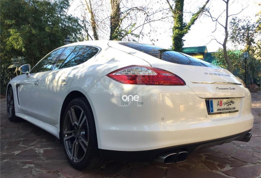 PORSCHE Panamera, Gasolina, año 2011, 80000 kilómetros, color Blanco , precio 64990€. Alfombrillas en color interior,Asientos delanteros y traseros ventilados,Dos portavasos sobre la guantera,Interior cuero natural,Kit interior Aluminio pulido,Interfaz para reproductor externo para PCM,Preparación para teléfono móvil,Volante multifunción de tres radios en cuero,Apertura eléctrica del portón del maletero,Control de voz para PCM,Cortinilla solar eléctrica en ventanillas traseras,Cuero Natural Espresso,Kit iluminación interior trasera,Paquete Sport Chrono Plus,Pasos de puerta en aluminio pulido,Sistema de control de voz para PCM,Techo corredizo eléctrico,Blanco Carrara (sólido),Llantas 911 Turbo II 20",Kit de potencia Panamera Turbo,Sistema de Control dinámico del chasis PDCC,Volante deportivo de tres radios con levas,Extintor de incendios,Sistema ayuda aparcamiento con cámara de marcha atrás,Suspensión adaptativa,Servotronic. Porsche Panamera Turbo, 2 propietarios anteriores, historial de mantenimiento, Porsche Approved, absolutamente inmaculado.