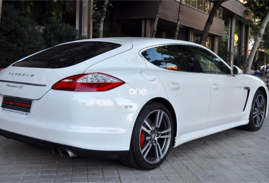 PORSCHE Panamera, Gasolina, año 2011, 143000 kilómetros, color Blanco , precio 45900€. Alfombrillas en color interior,Asientos delanteros ventilados,Asientos de cuero Soft Look,Asientos delanteros y traseros calefactables,Asientos delanteros y traseros ventilados,Dos portavasos sobre la guantera,Kit interior Aluminio pulido,Selector del PDK en aluminio,Recubrimiento interior del techo en Alcántara,Interfaz para reproductor externo (AUX),Interfaz para reproductor externo para PCM,Volante multifunción de tres radios en cuero,Sistema de sonido BOSE,Apertura eléctrica del portón del maletero,Asientos deportivos adaptables,Control de velocidad adaptativo,Control de voz para PCM,Escudo Porsche en reposacabezas delanteros,Kit iluminación interior trasera,Kit de memoria confort delante,Pasos de puerta en aluminio, con logo, iluminados,PCM Porsche con módulo de navegación,Salidas de escape deportivas,Registro electrónico de rutas,Servotronic,Sistema de luz adaptativo,Techo corredizo eléctrico,Toma adicional de carga en la consola trasera,Volante calefactable,Cristales térmicos y aislantes del ruido,Llantas Panamera Sport 20",Sistema de escape deportivo,Sistema de Control dinámico del chasis PDCC,Suspensión adaptativa en combinación con PDCC,Volante deportivo de tres radios con levas,Airbags laterales traseros,Sistema ayuda aparcamiento,Sistema ayuda aparcamiento con cámara de marcha atrás. PORSCHE PANAMERA 4S