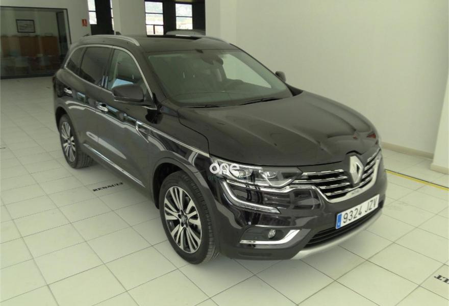 RENAULT Koleos, Diesel, año 2017, 18619 kilómetros, color Negro metalizado, precio 31990€. Cuero Nappa negro,Negro Amatista (metalizado especial),Pintura metalizada Negro Amatista,Rueda de repuesto tipo galleta,Ayuda al aparcamiento lateral + Easy park assist. ***La oferta incluye el descuento de financiación de 1.400€ por financiar 10.000,00€ con Banco SANTANDER a 60 meses. Cuota: 235€/mes. Si se paga al contado, el precio de venta del coche sería 33.390,00€ todo incluido.***{[n]}{[n]}Principal equipamiento de serie: maleteró eléctrico, llantas de aleación de 19", tapicería de cuero Nappa Negro, climatizador bizona, ordenador de bordo, freno de parking asistido, Renault MULTI-SENSE (5 modos de conducción), tarjeta de acceso y arranque manos libres, retrovisores exteriores regulables y abatibles eléctricamente, renault R-LINK 2: sistema multimedia con pantalla táctil de 8,7", NAVEGADOR y cartografía Europa, equipo de audio BOSE con 12 altavoces, cajón de graves y Active Noise Control, alerta por cambio involuntario de carril, regulador y limitador de velocidad, cambio automático de luces de carretera/cruce, frenada de emergencia asistida y radar de aparcamiento trasero con sistema Easy Park Assist. {[n]}.