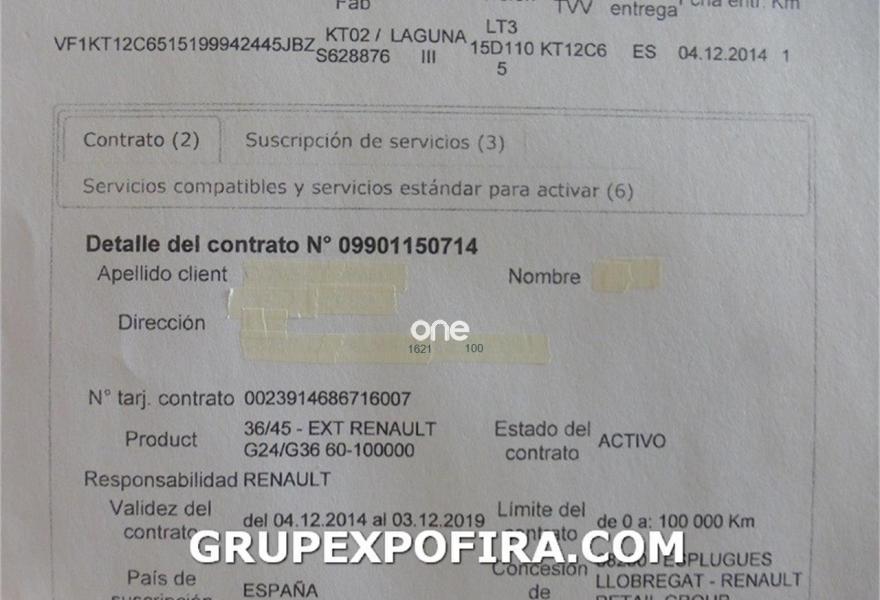 RENAULT Laguna, Diesel, año 2015, 82000 kilómetros, color Gris / Plata metalizado, precio 11500€. Tapicería mixta TEP/tela carbón oscuro,Pintura metalizada,Gris Platino (metalizado). VEHÍCULO PENDIENTE DE PREPARACIÓN - PREGUNTAR DISPONIBILIDAD - MATRICULADO EL 12/2014 - GARANTÍA RENAULT HASTA 12/2019 O 100.000KM., modelo LIMITED con asientos mixtos piel/tela, GPS, sensor de luces y lluvia, luces efecto lupa, luz de día LED, llantas de aluminio, control y limitador de velocidad, bluetooth manos libres, isofix, cortinas en ventanillas traseras. Se entrega revisado, juego de dos mandos, manuales originales y garantía RENAULT HASTA 12/2019.